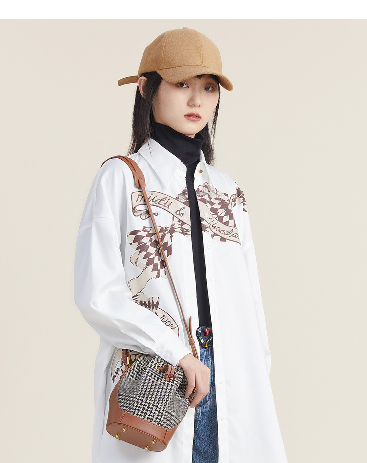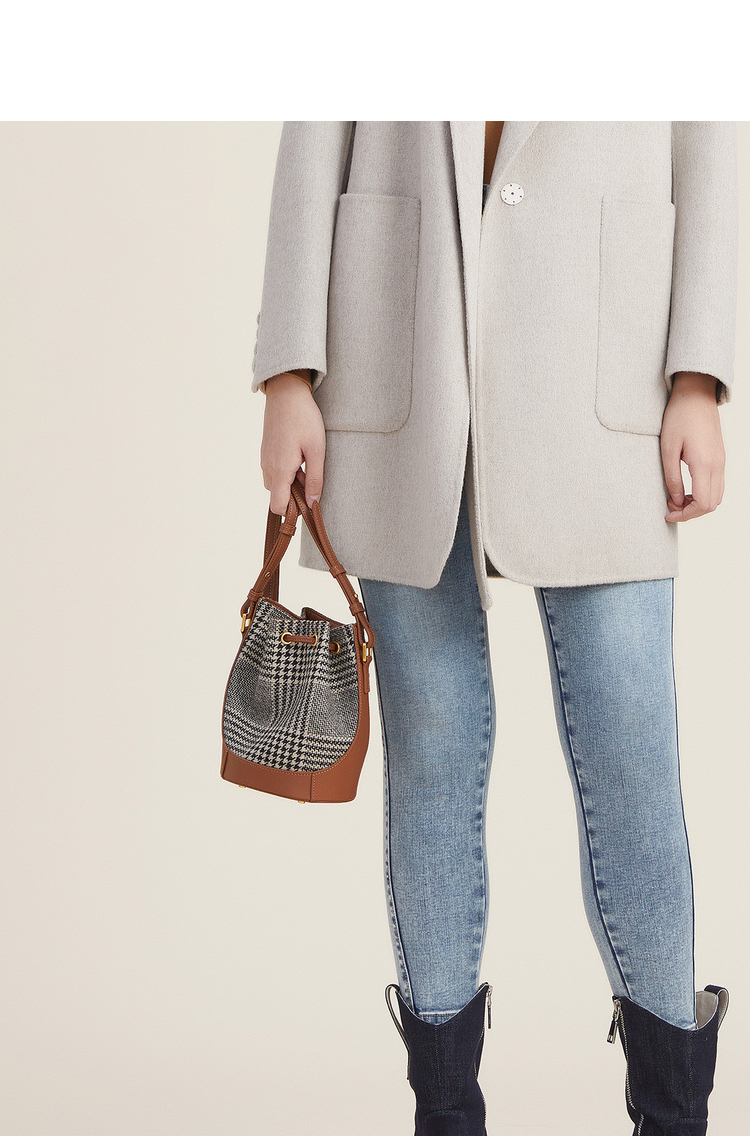 谜底2022秋新品时髦复古拼布水桶包斜跨小包包单肩包女223MQ1421