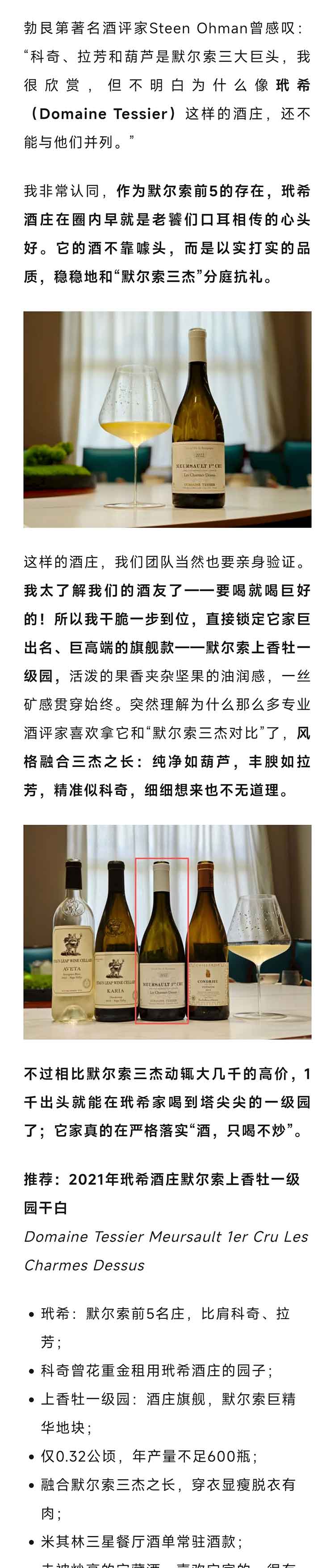 【默尔索前5】法国勃艮第2021年玳希酒庄默尔索上香牡一级园霞多丽干白