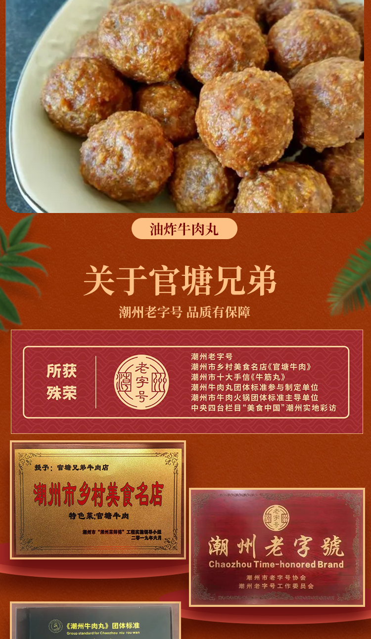 官塘兄弟门店堂食同款牛肉丸牛筋丸250g/袋