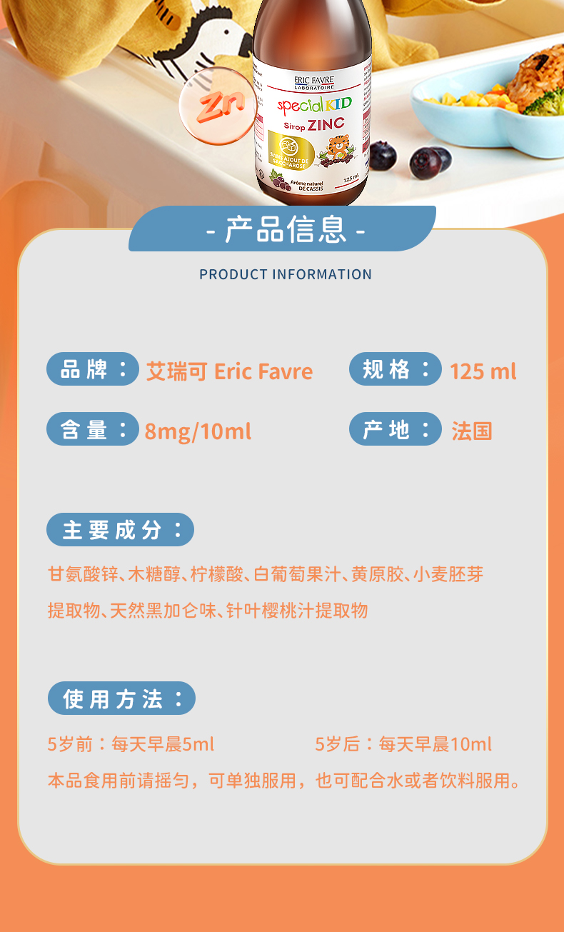 【跨境】法国ERIC FAVRE艾瑞可儿童补锌营养液125ml/瓶