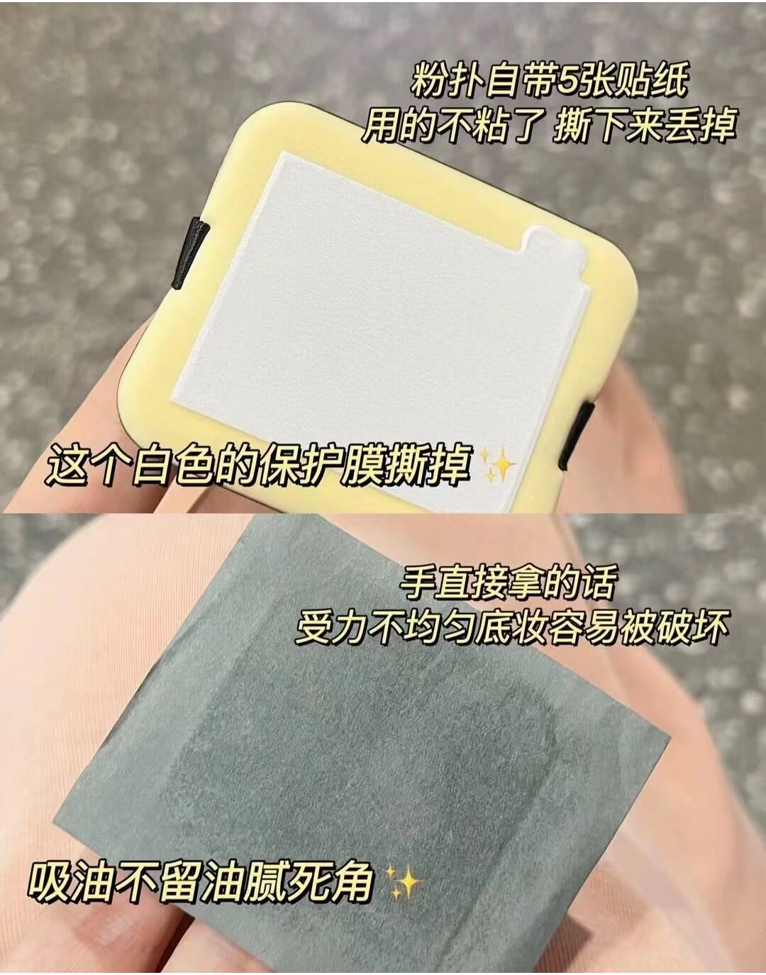 平时爱出油又需要补妆的姐妹,可以先把这个把油脂吸掉再用粉饼补妆