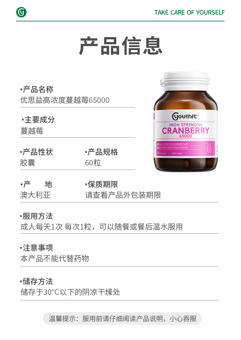 澳洲Youthit优思益 高浓度蔓越莓65000胶囊【会员专享】