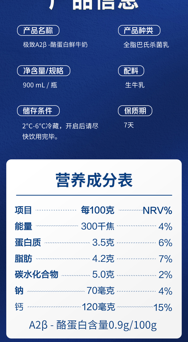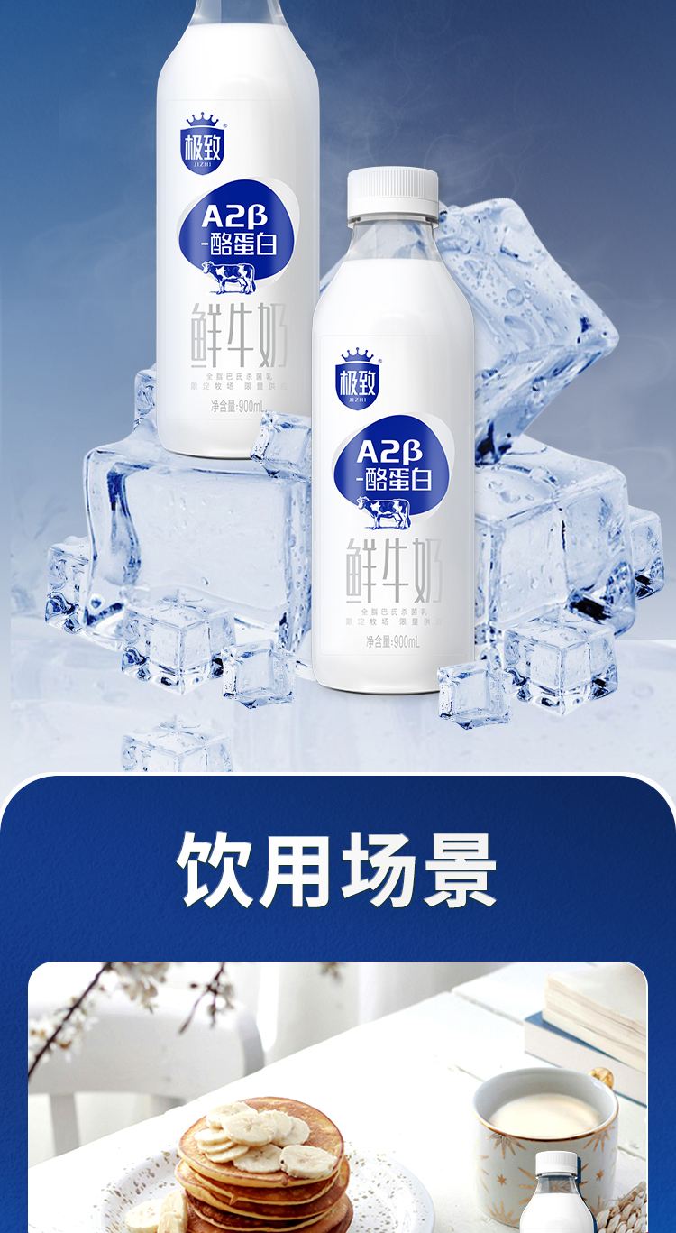 【自提-低温】极致A2β-酪蛋白鲜牛奶900ml*8