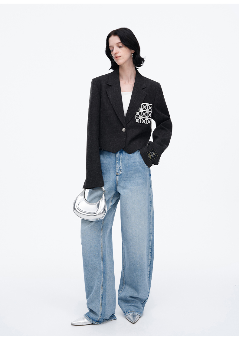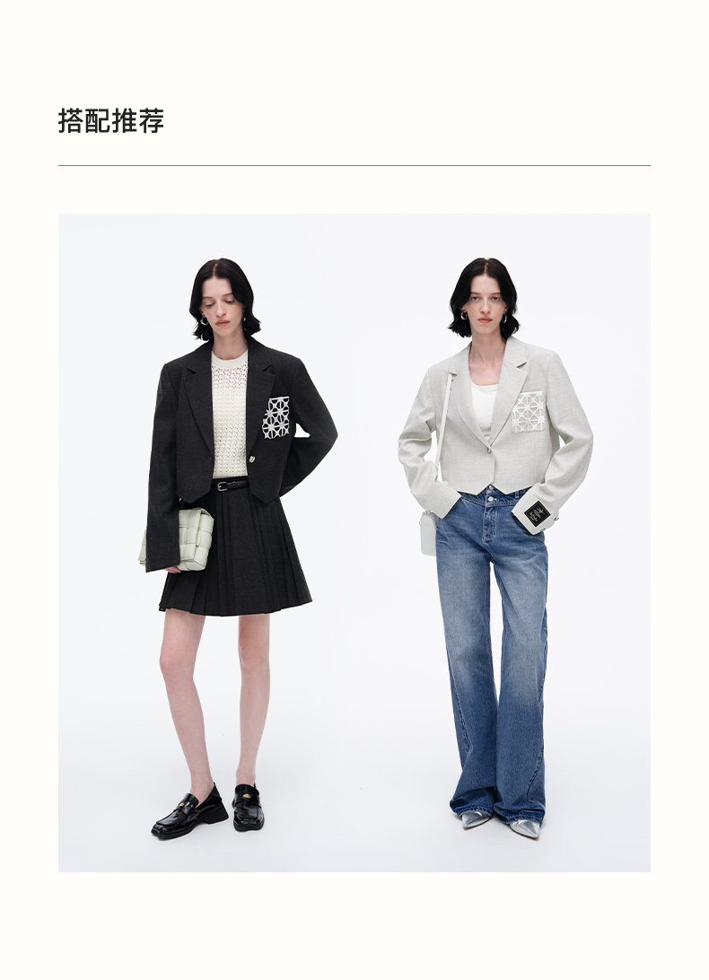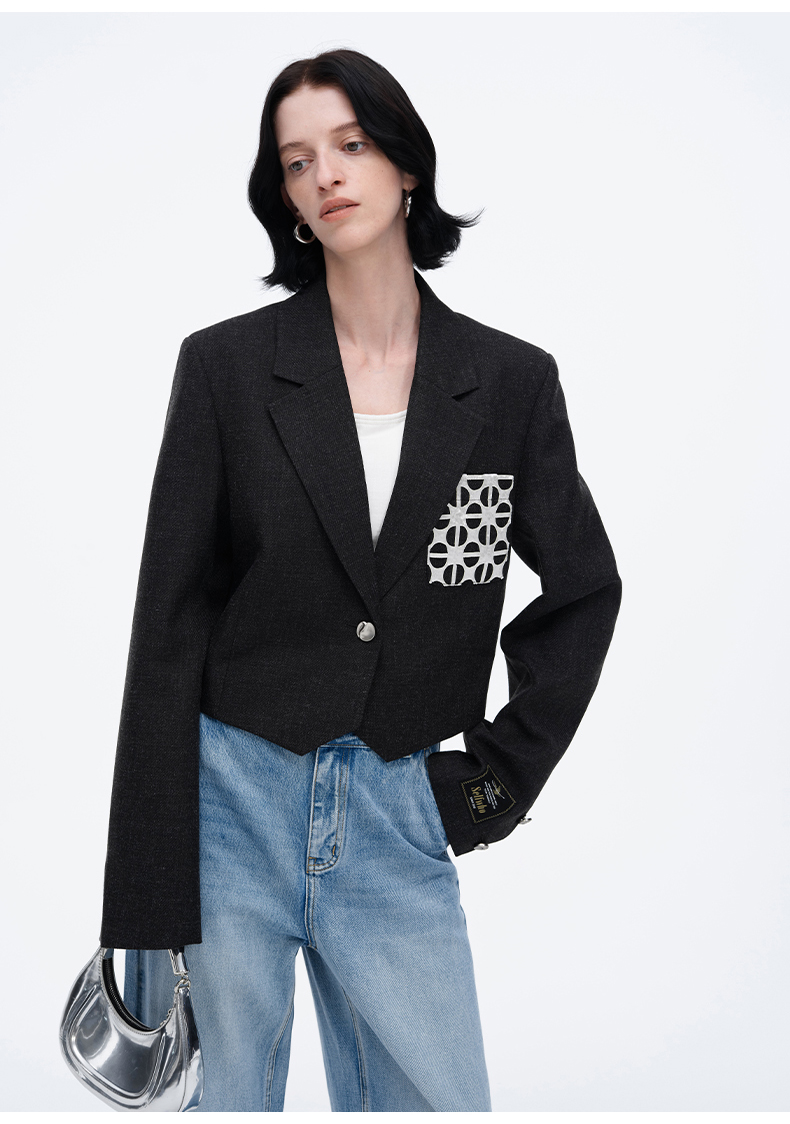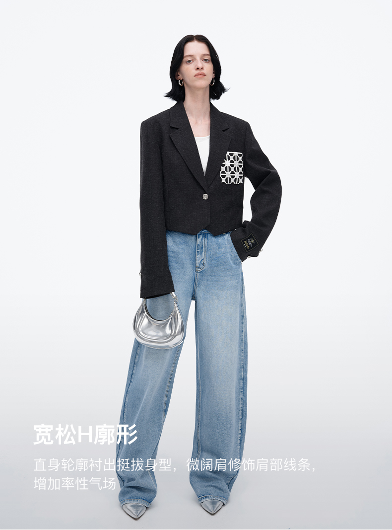 SELFWHO经典戗驳领西装外套女2025春新款通勤宽松小个子短款西服