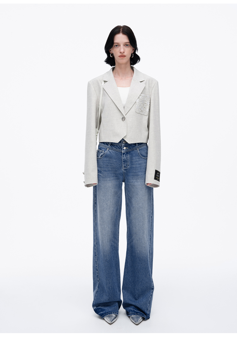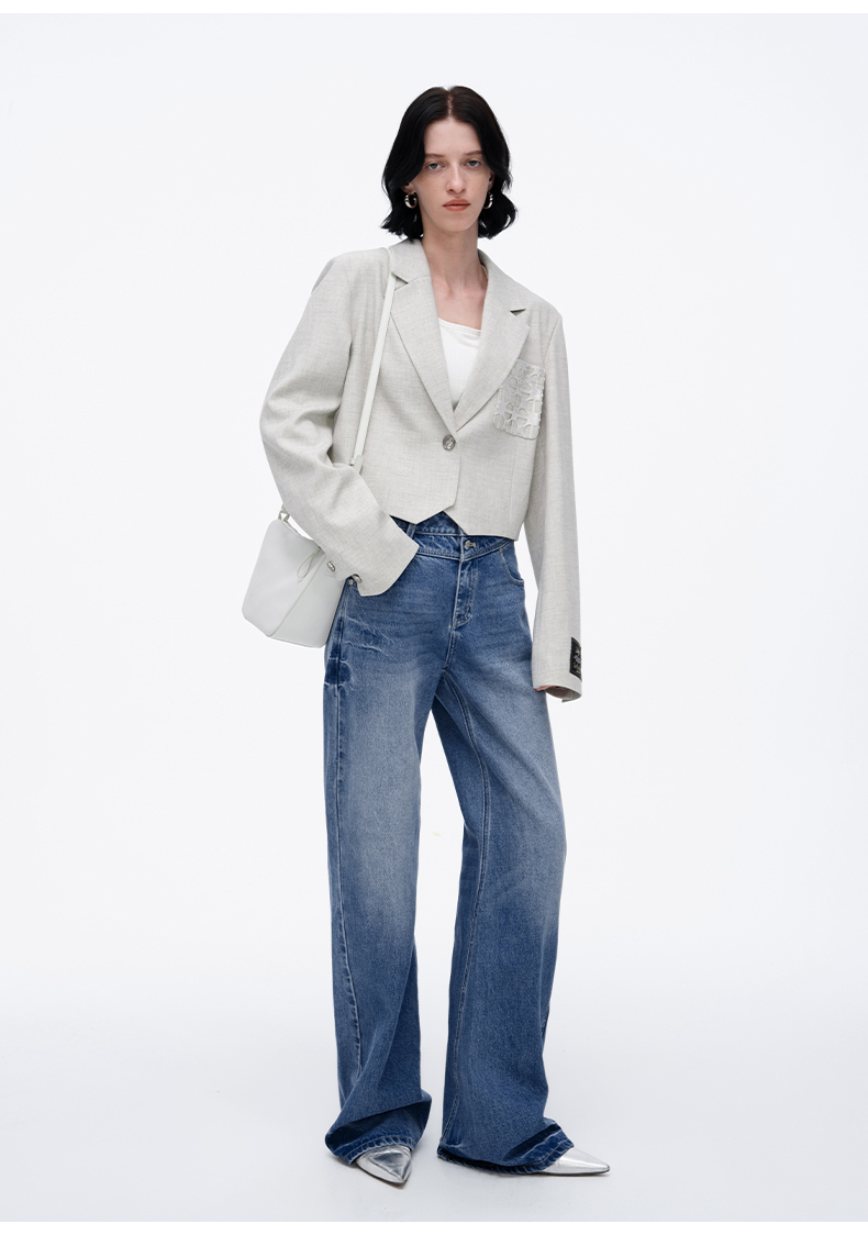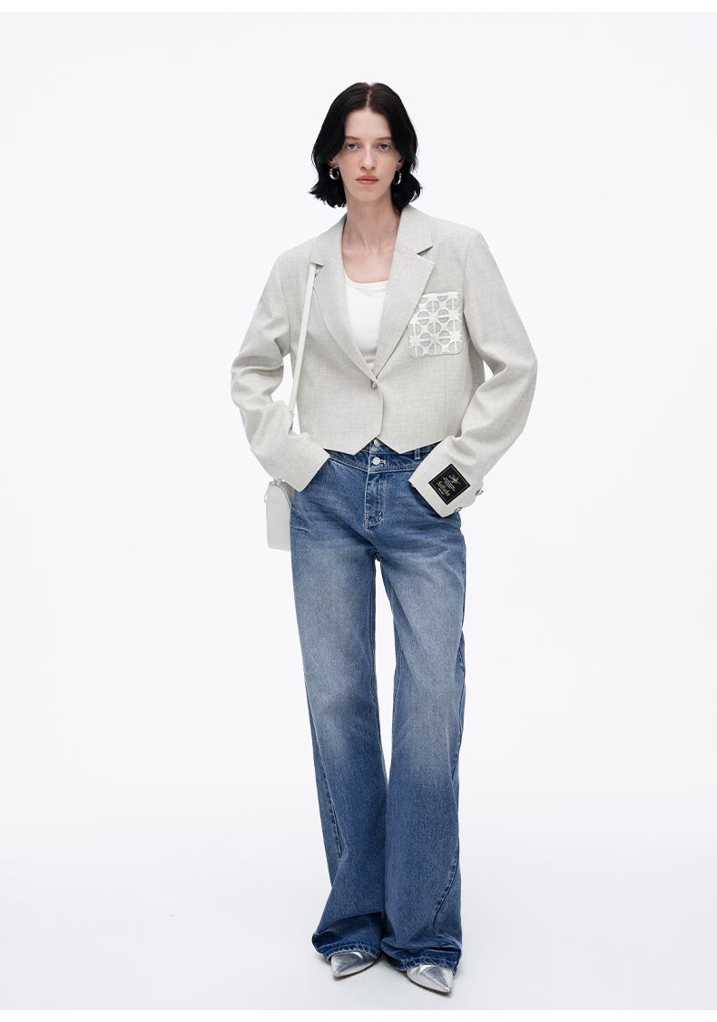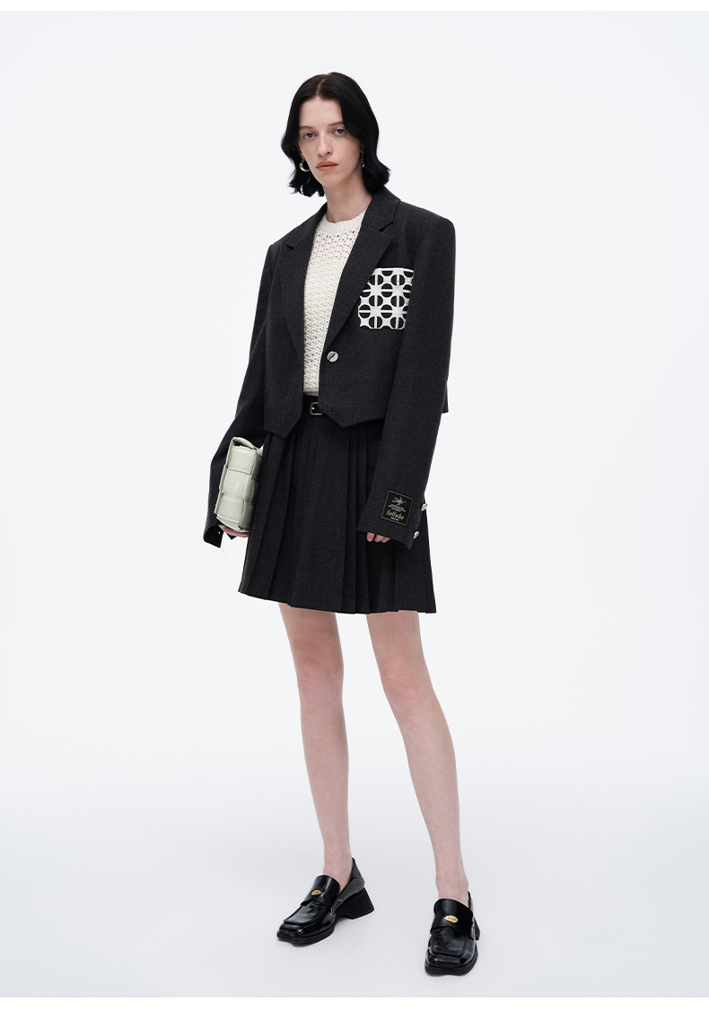 SELFWHO经典戗驳领西装外套女2025春新款通勤宽松小个子短款西服