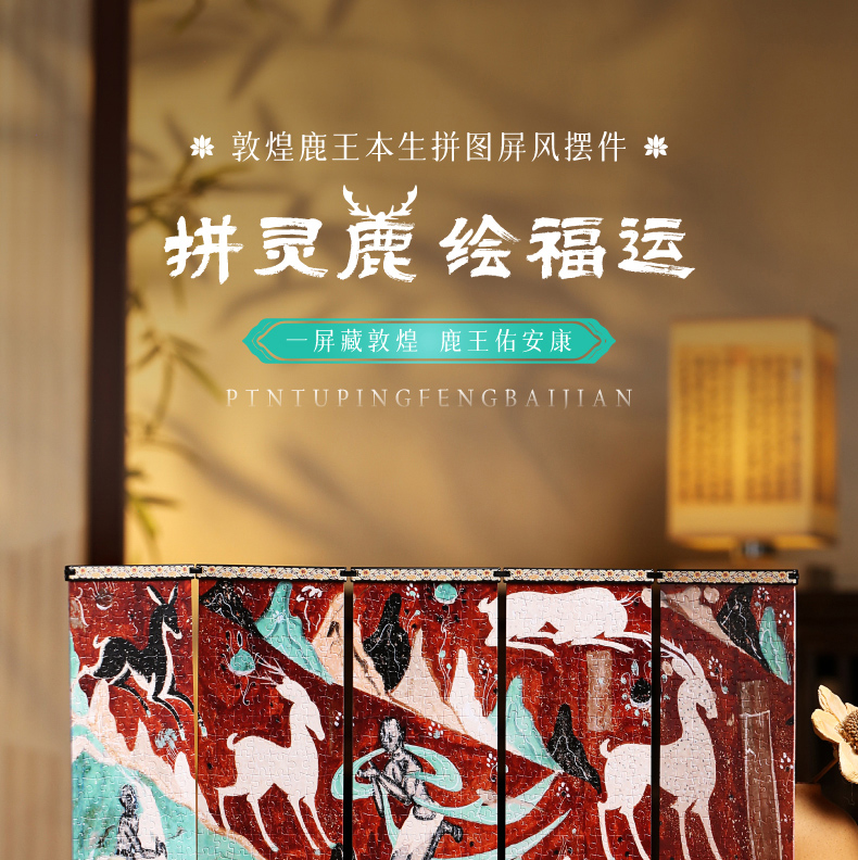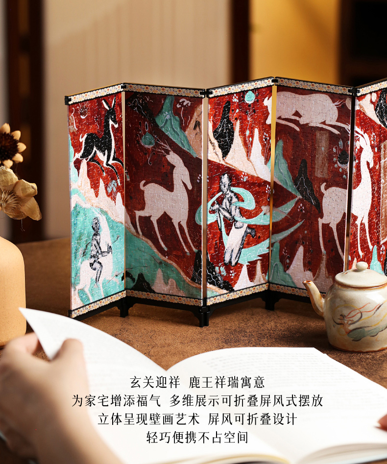 敦煌研究院 【鹿王本生拼图屏风摆件】文创礼品diy拼图桌面装饰品中式