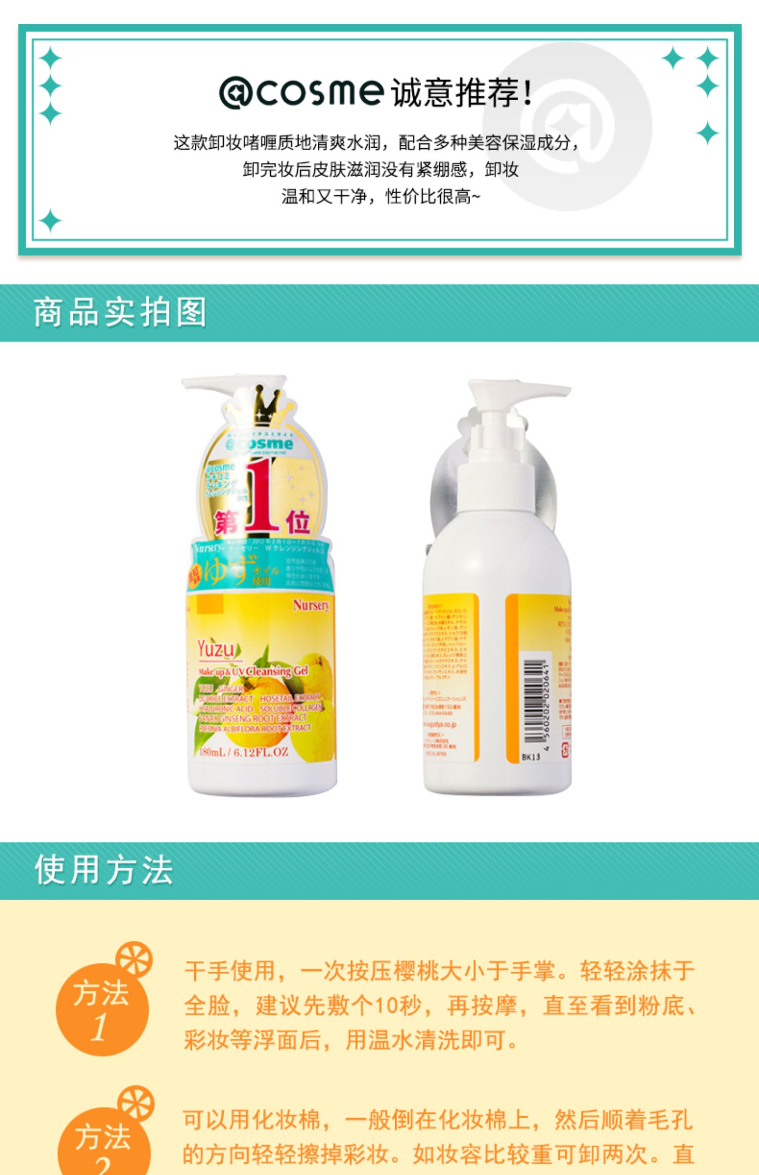 娜斯丽 卸妆洁面啫喱 香橙180ml