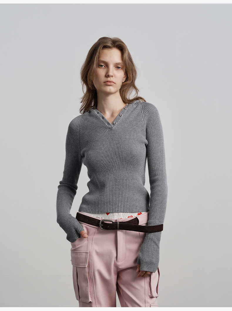 NUTH 披肩毛衣假两件上衣灰色针织衫女
