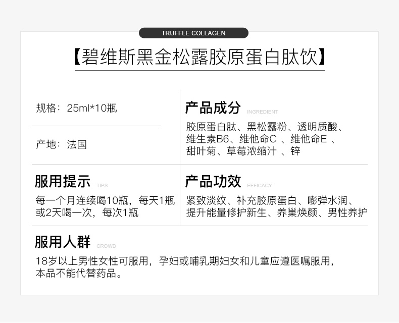 【营养师专属】法国碧维斯Biocyte黑松露胶原蛋白肽饮25ml10瓶/盒