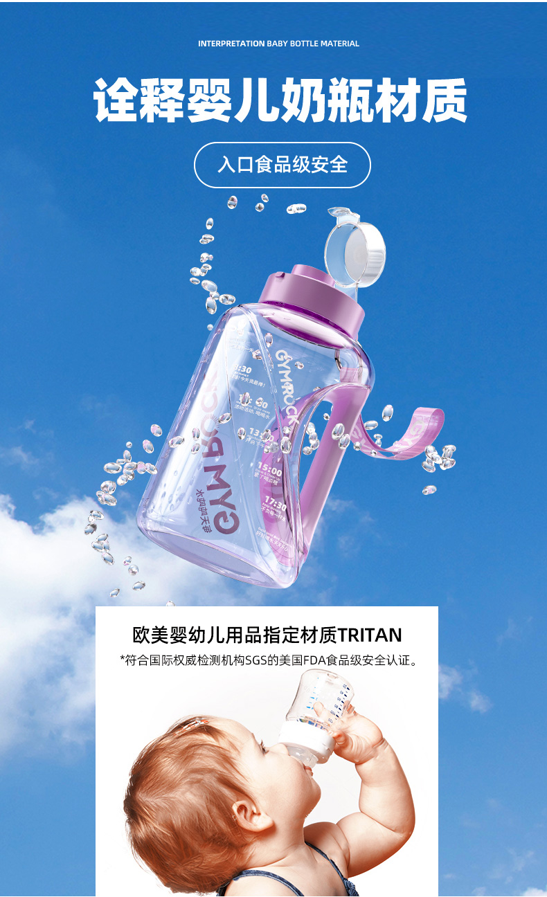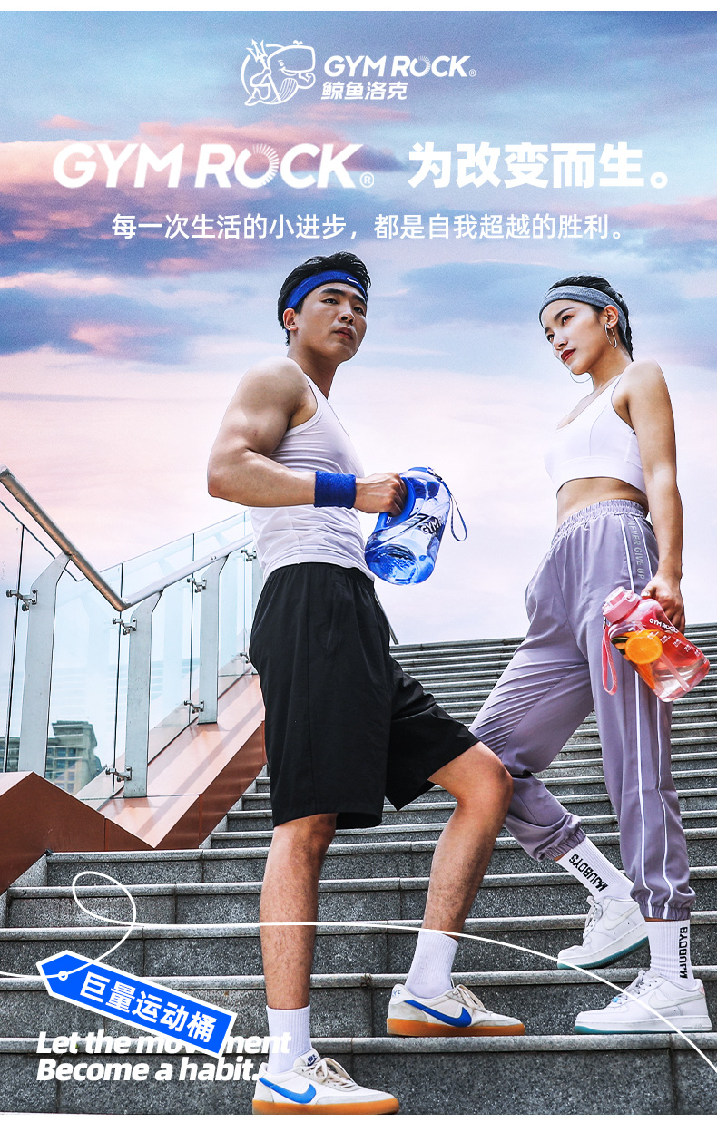 泊寓专属优惠GYM ROCK巨量运动桶大容量水杯健身Tritan耐高温水壶