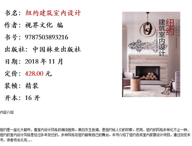纽约建筑室内设计 9321 视界文化 室内装修装潢设计参考书 中国林业出版社 畅销书