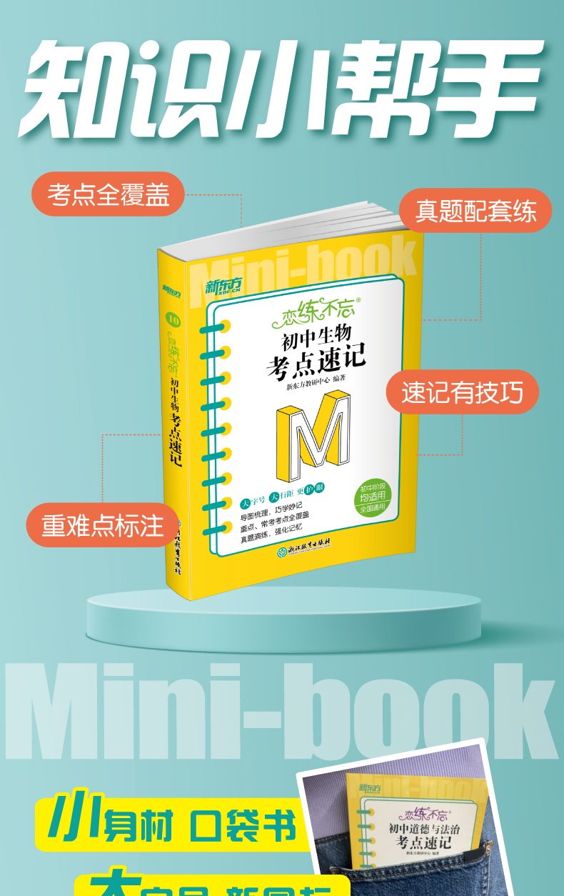 【新东方】恋练不忘 初中生物+地理 共2本 考点速记 中考生物 生物随身记背诵口袋书 中考复习 初一初二初三 背诵技巧记忆法 新东方