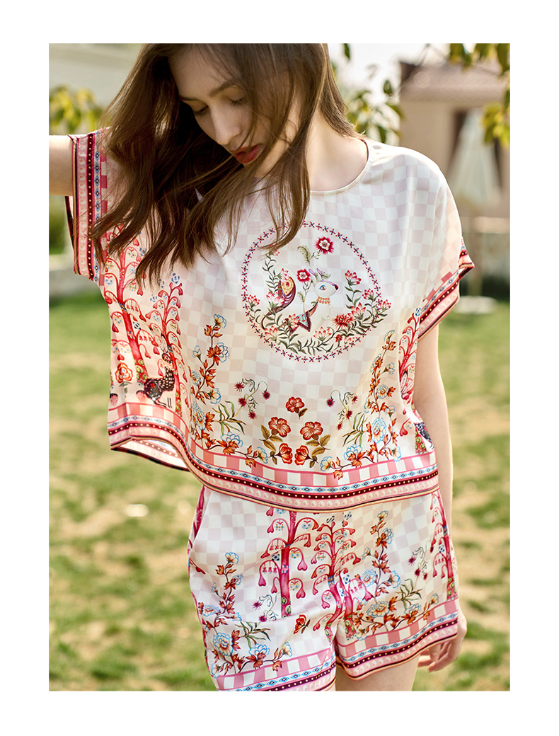 Solo seta22姆米真丝短袖短裤套装女桑蚕丝印花睡衣2025秋季新款