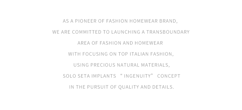 - soloseta专注于真丝织物,灵感源自意大利语,中文含义为“只做真丝”的意思。让睡衣变时尚,居家和外出瞬间切换,使其更具有出街,度假,参加宴会等功能。