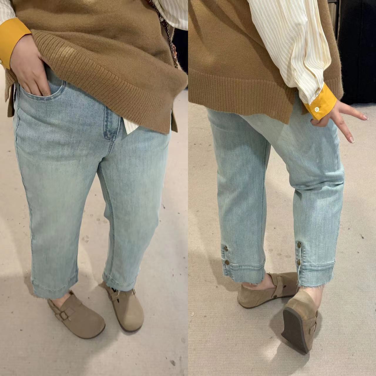 2024新品 佳佳同款【法棍裤】高腰直筒烟管牛仔裤直筒蓝色时尚休闲百搭纽扣