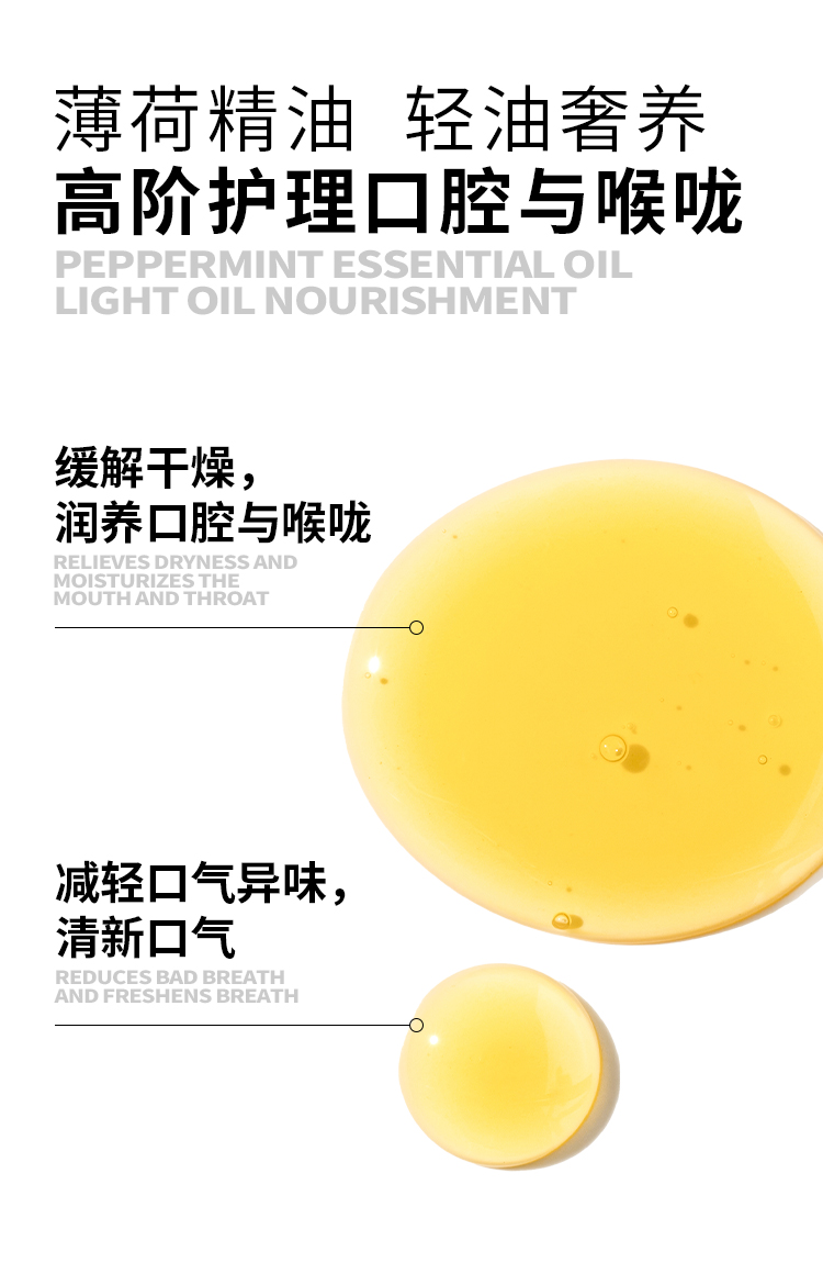 萃取优质薄荷精油,缓解口腔干燥,抑制口腔异味,润泽口腔与喉咙,