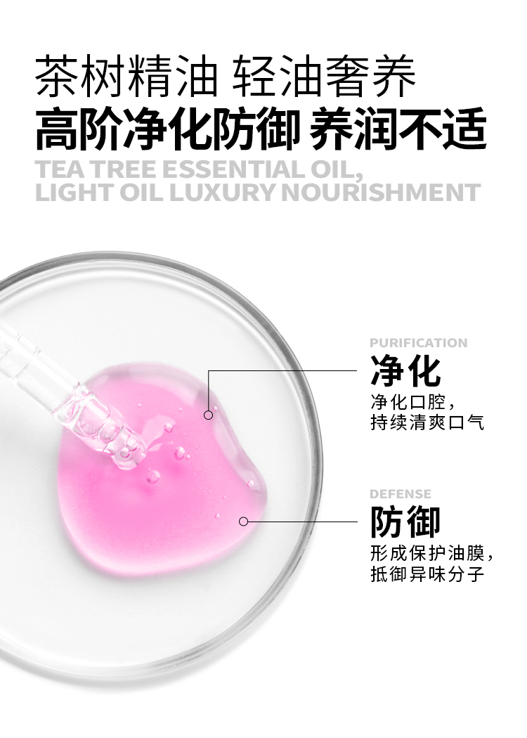 产品采用了H-3黏膜保湿和油养疗愈双重技术,持续保卫口腔健康
