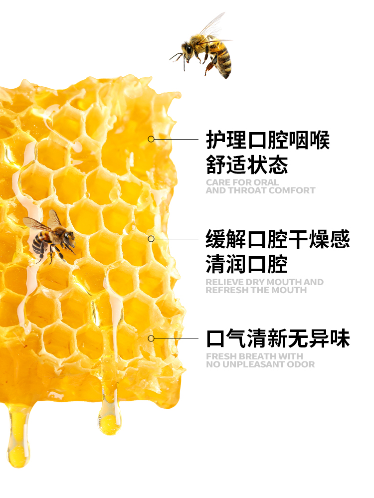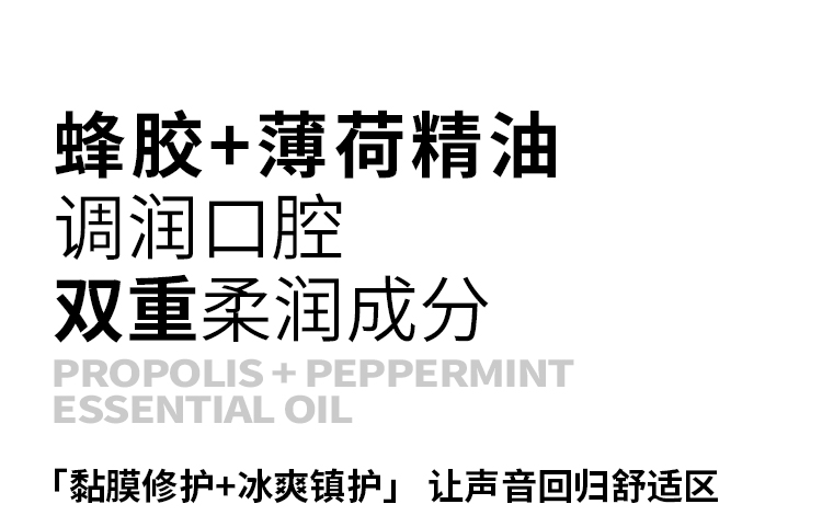 添加纯天然蜂胶成分,保护声带,滋润口腔,