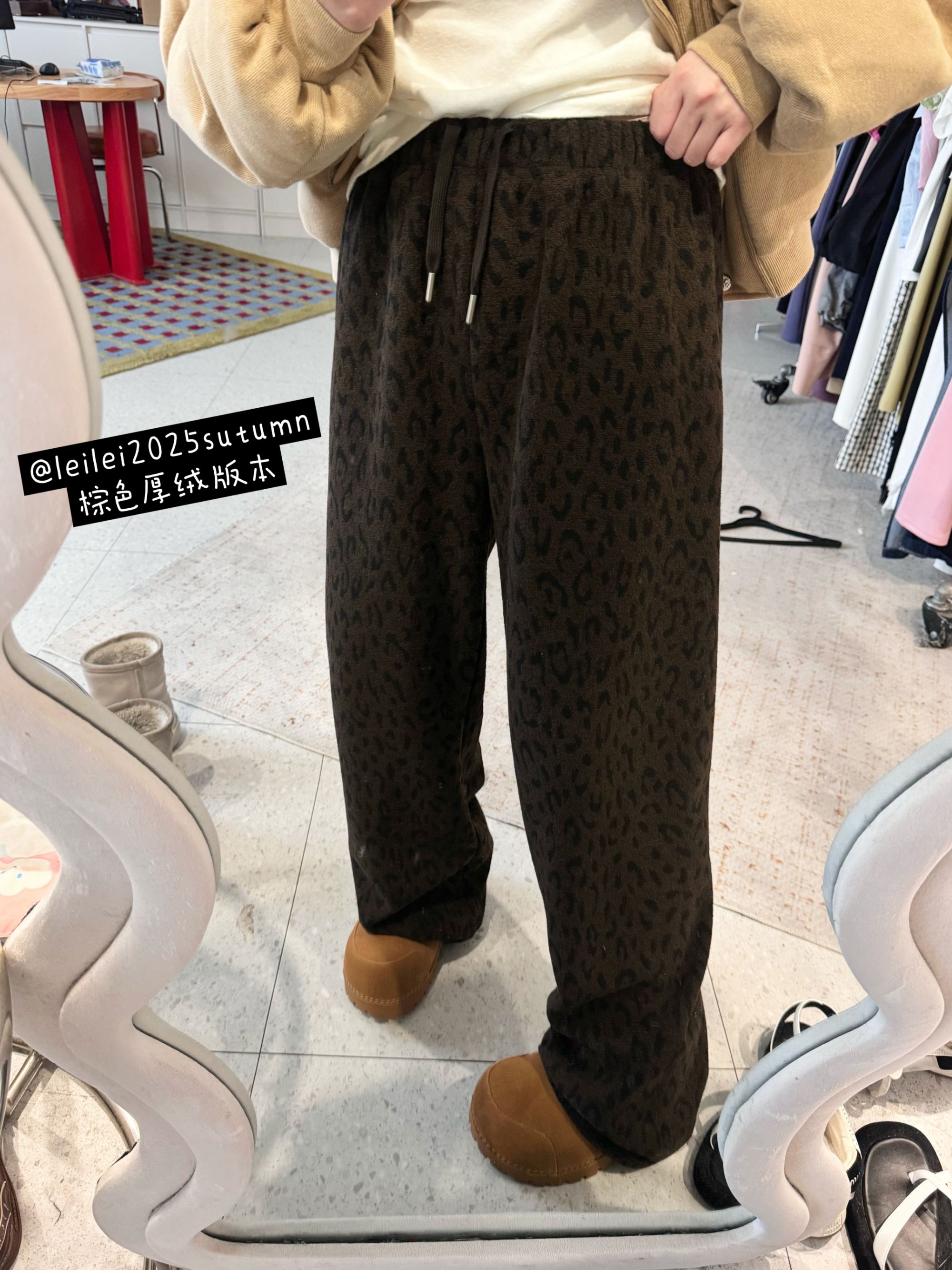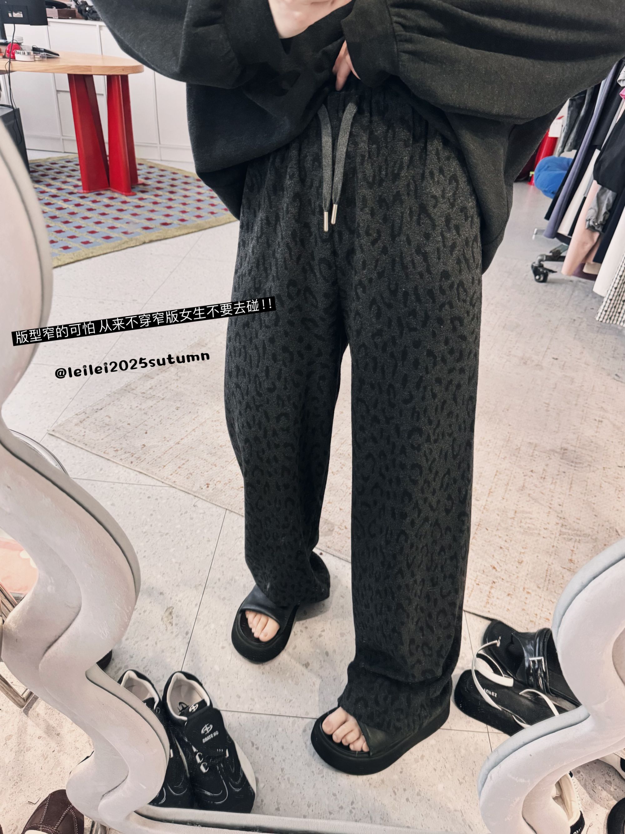 25AW上新【现货折上95折】 蕾蕾同款【小黑纹!】慵懒全松紧高腰抽绳豹纹窄版直筒休闲裤