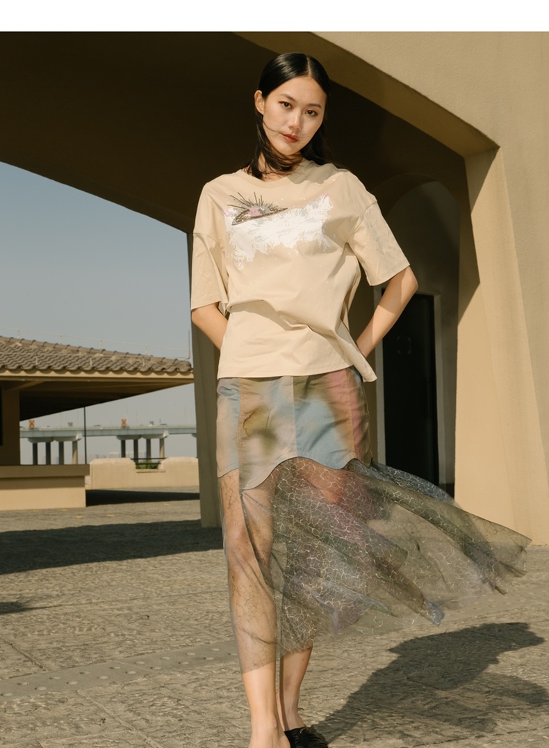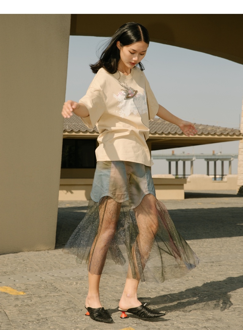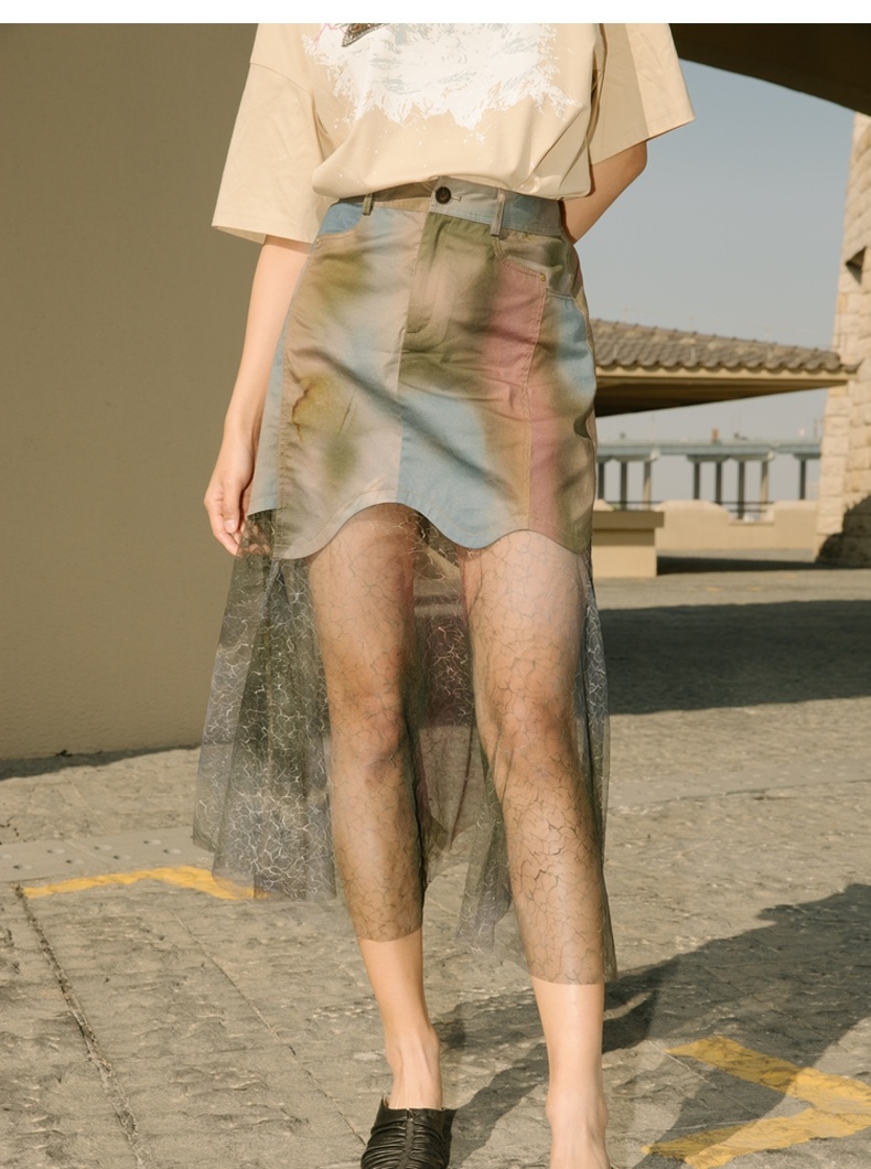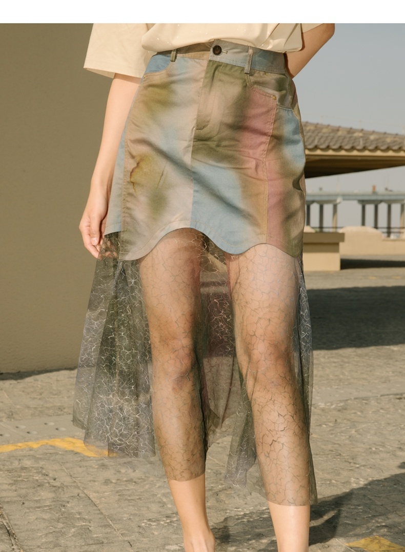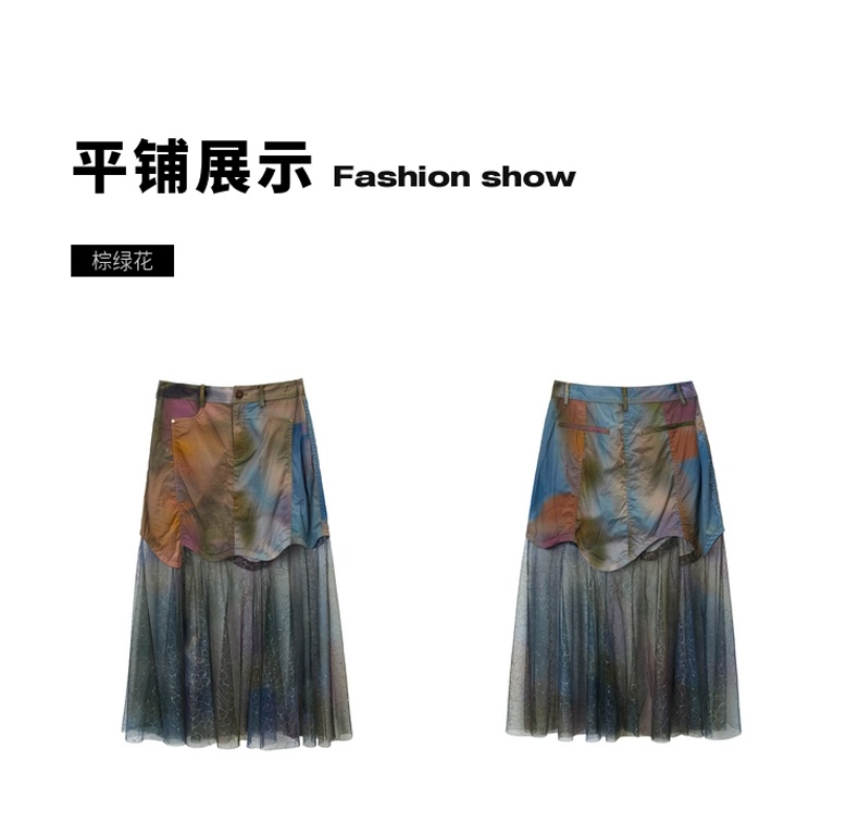 谜底半身裙2021秋季新款复古浪漫高腰拼接蕾丝裙213MB1780