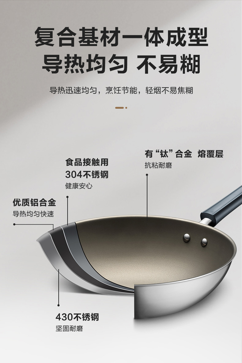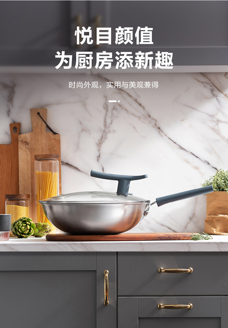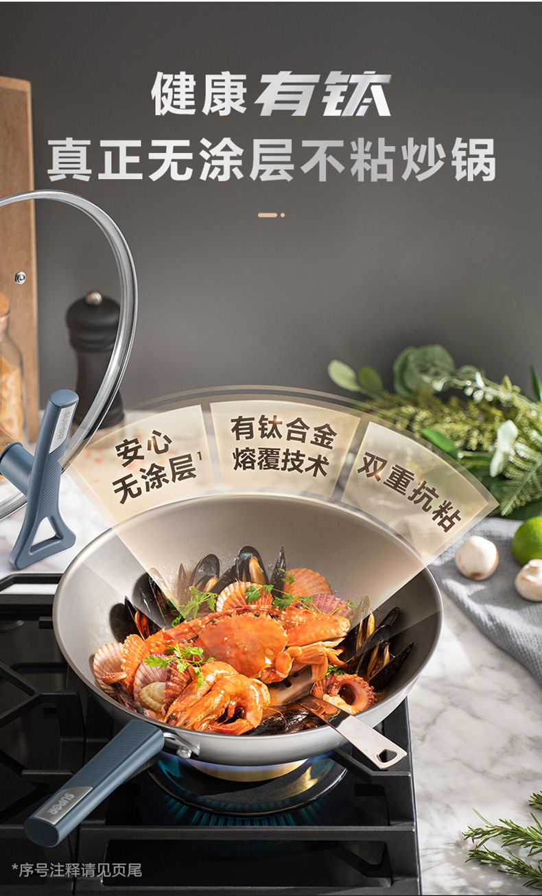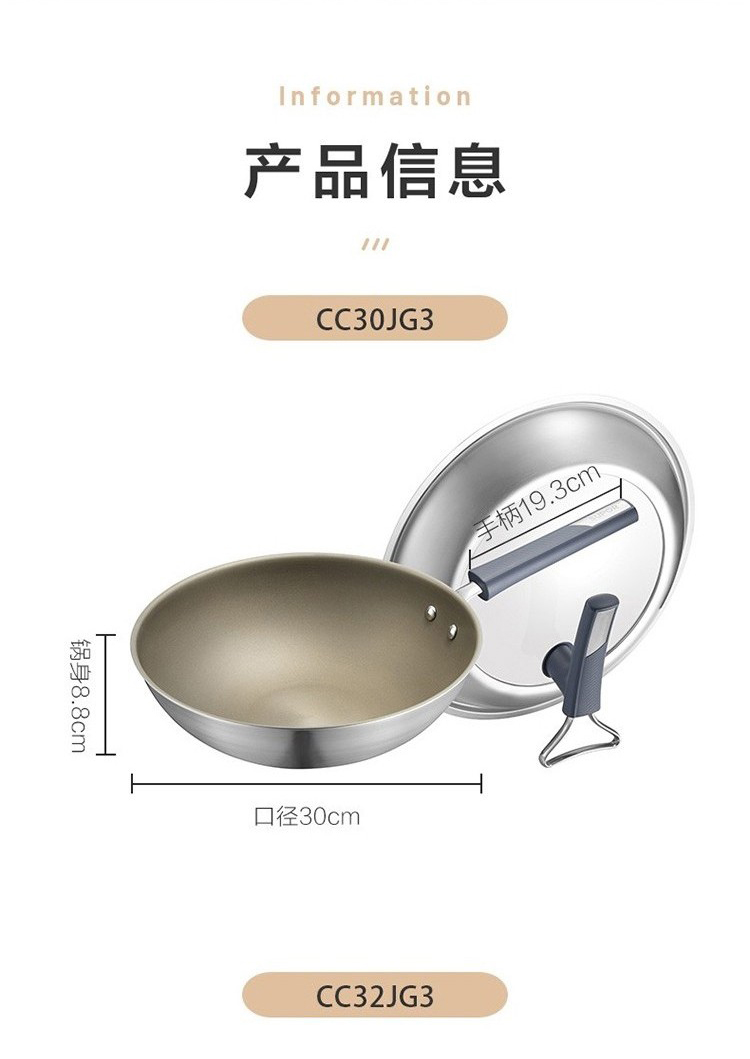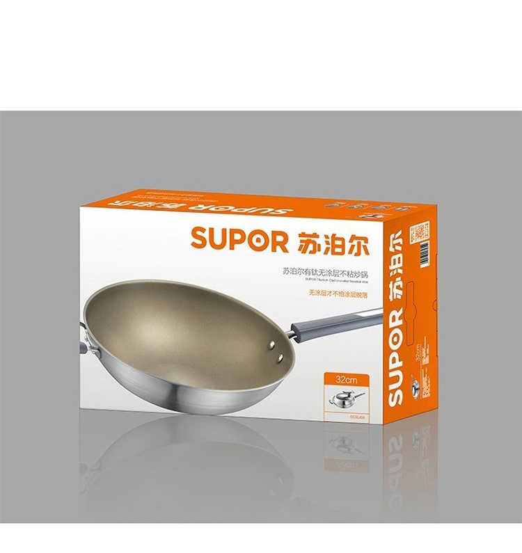 苏泊尔(SUPOR) 炒锅有钛无涂层不粘锅 家用不锈钢炒菜锅防粘锅 平底炒锅电磁炉燃气灶通用 32CM CC32JG3