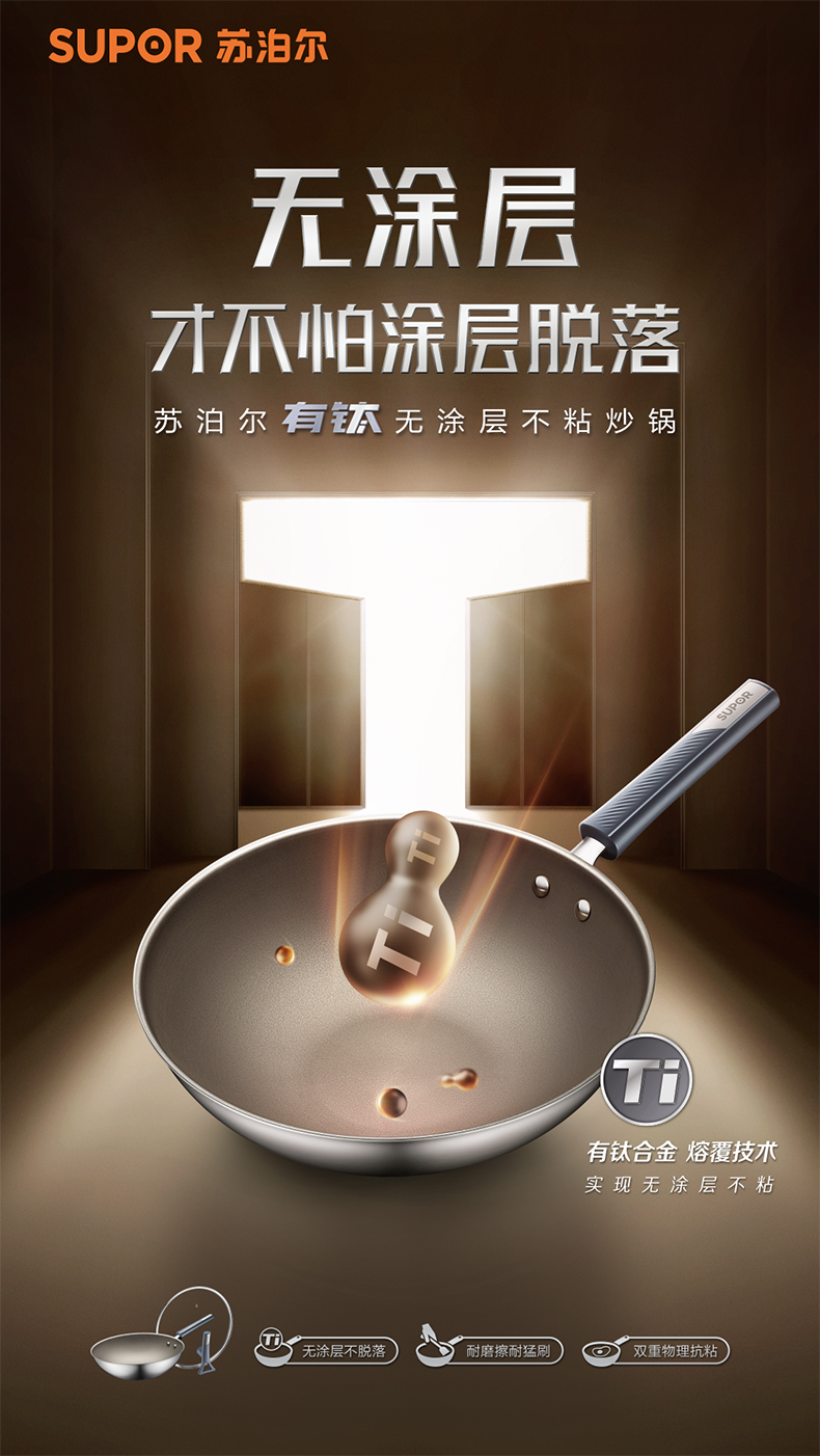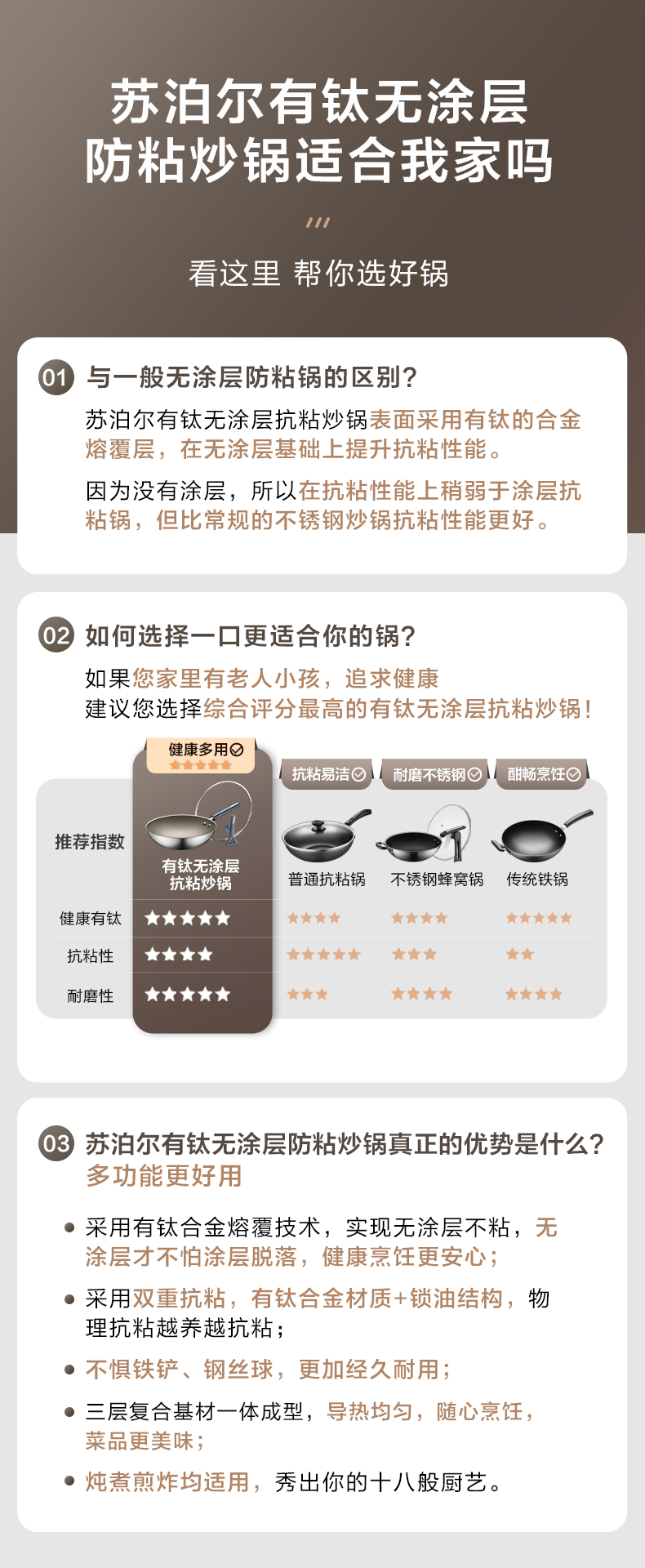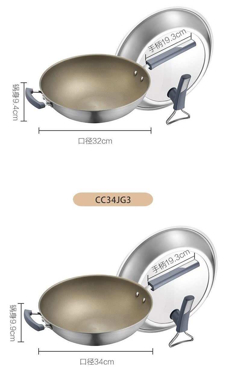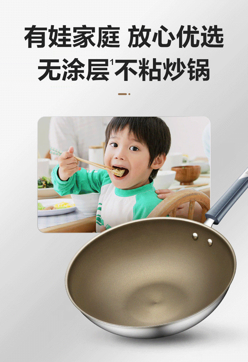 苏泊尔(SUPOR) 炒锅有钛无涂层不粘锅 家用不锈钢炒菜锅防粘锅 平底炒锅电磁炉燃气灶通用 32CM CC32JG3