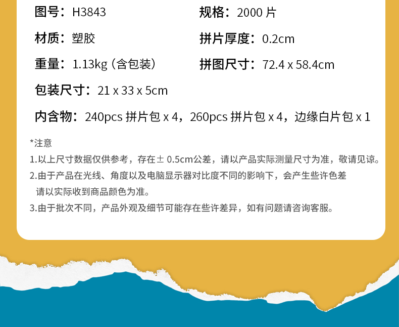 【折扣商品 不退不换】2000片 平面塑料拼图 H3843 Bill Bell-海港日与夜