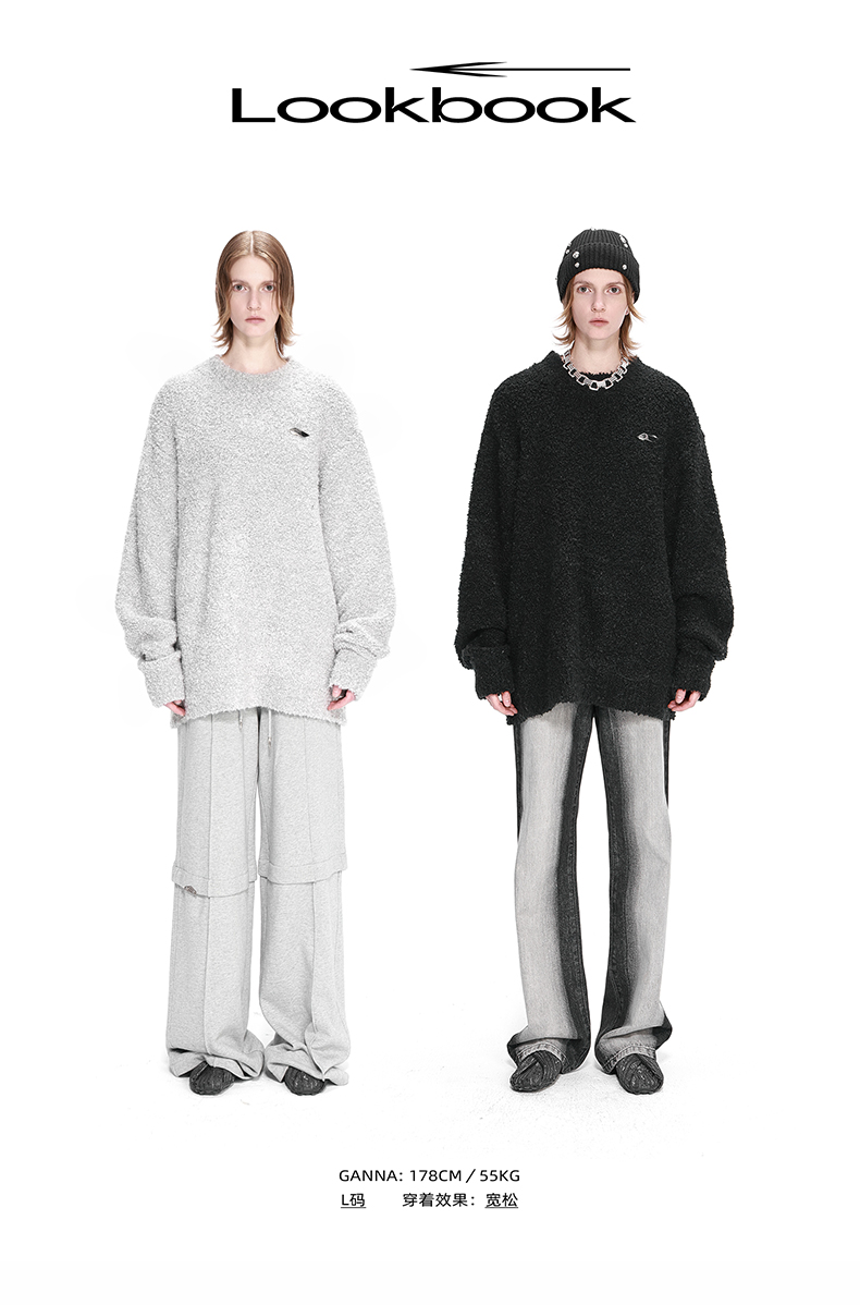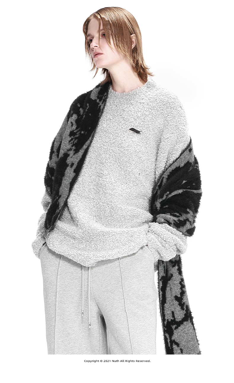 NUTH 慵懒时髦毛圈百搭毛衣宽松圆领长袖套头OVERSIZE针织衫