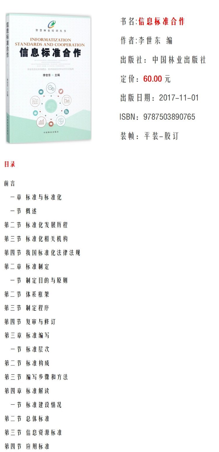 智慧林业培训丛书 信息标准合作 李世东 9076 中国林业出版社 畅销书籍