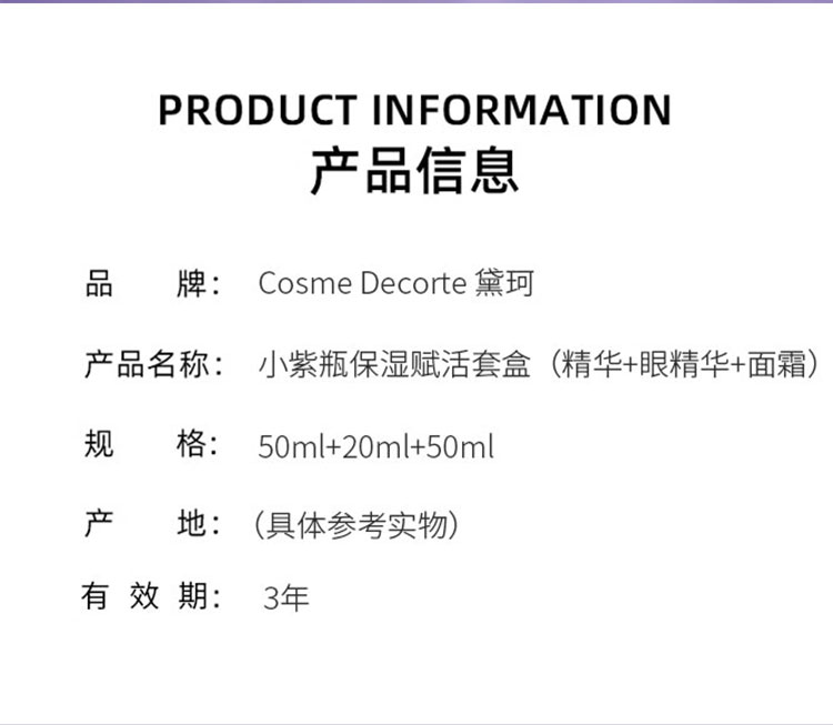 【保税仓】Cosme Decorte黛珂小紫瓶保湿赋活套盒(精华50ml+眼精华20ml+面霜50ml)(效期:2028/03)