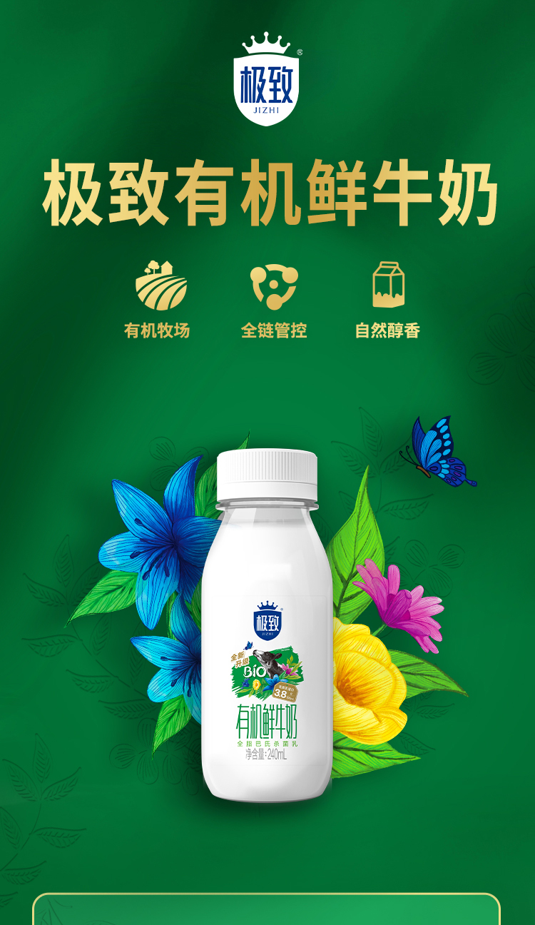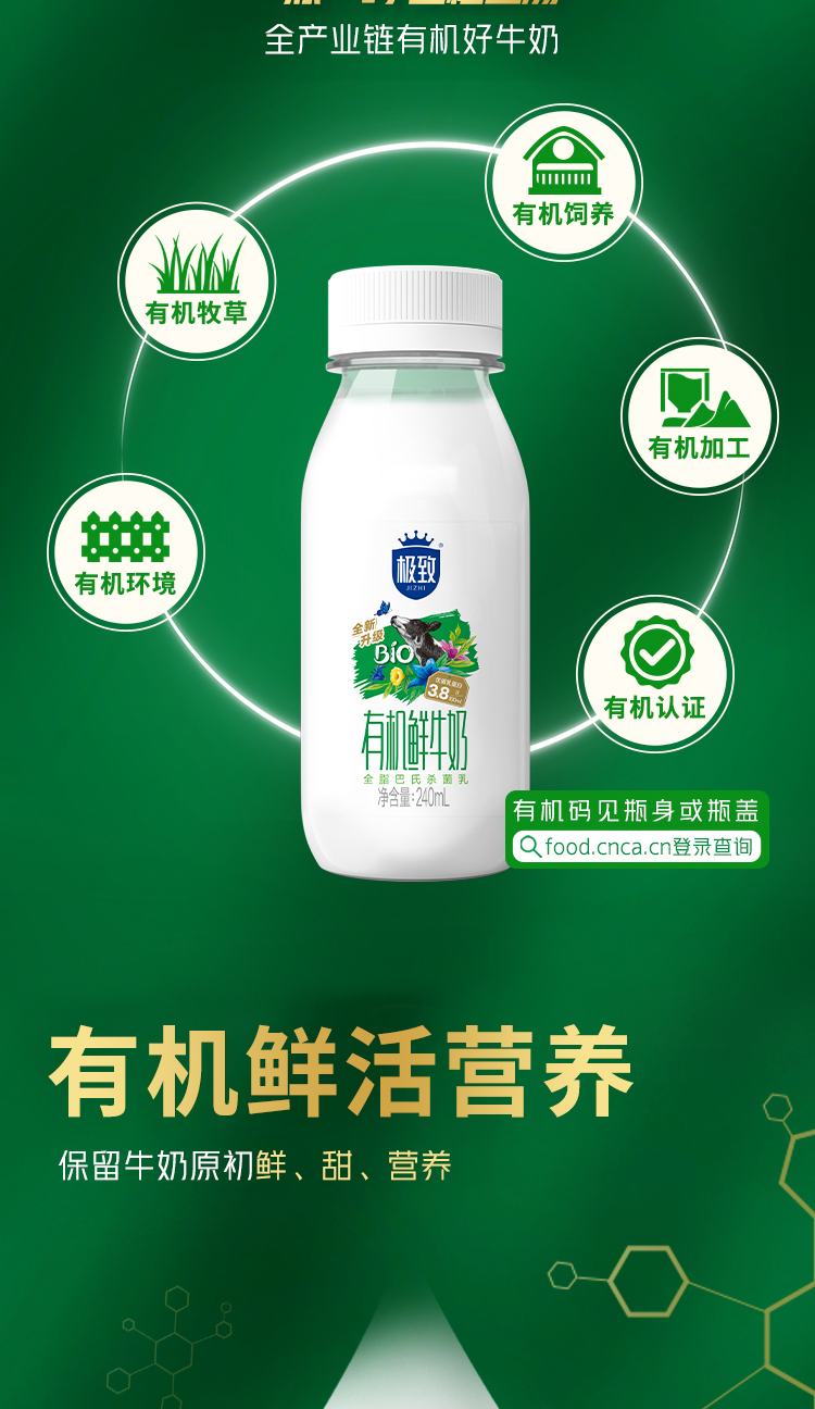 【快递到家-低温】极致有机鲜牛奶240ml*5
