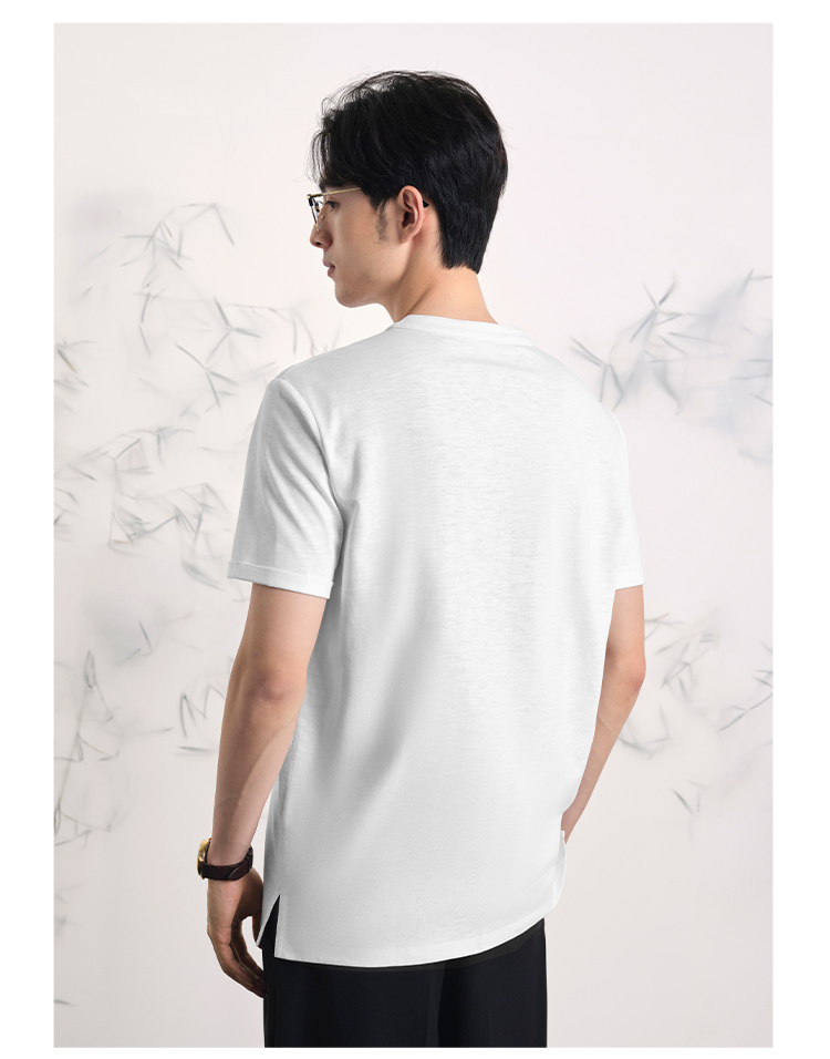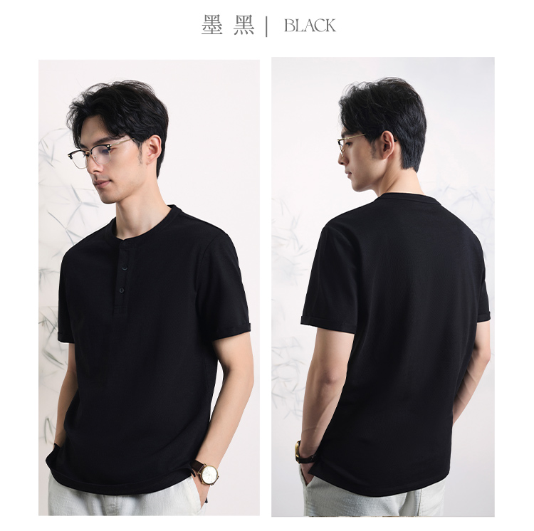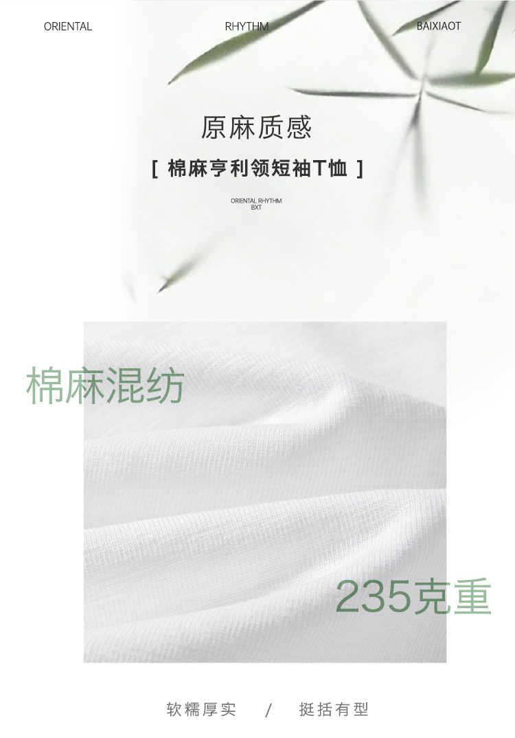 拇指白小T棉麻亨利领短袖T恤无我系列