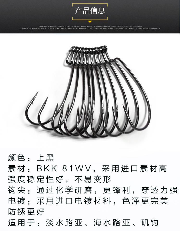 BKK黑金刚9003宽腹曲柄钩路亚软虫钩软饵钩鱼钩鲈鱼鳜鱼石斑专用