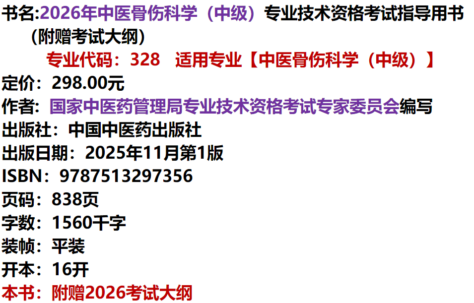 2026年中医骨伤科学(中级)专业技术资格考试指导用书 专业代码328国家中医药管理局专业技术资格考试专家委员会中国中医药出版社