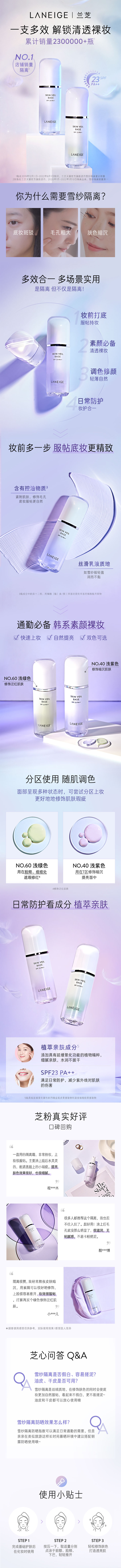 LΛNEIGE兰芝 雪纱丝柔防晒遮瑕隔离霜三合一妆前乳 30ml