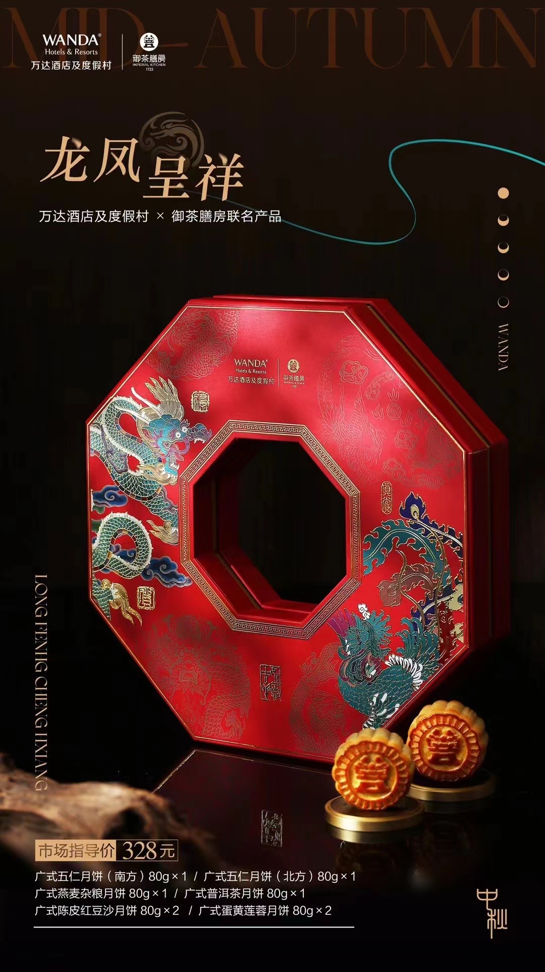 万达酒店x御茶膳房—龙凤呈祥,月饼礼盒8枚