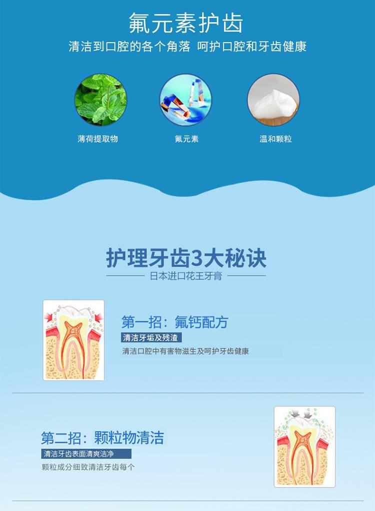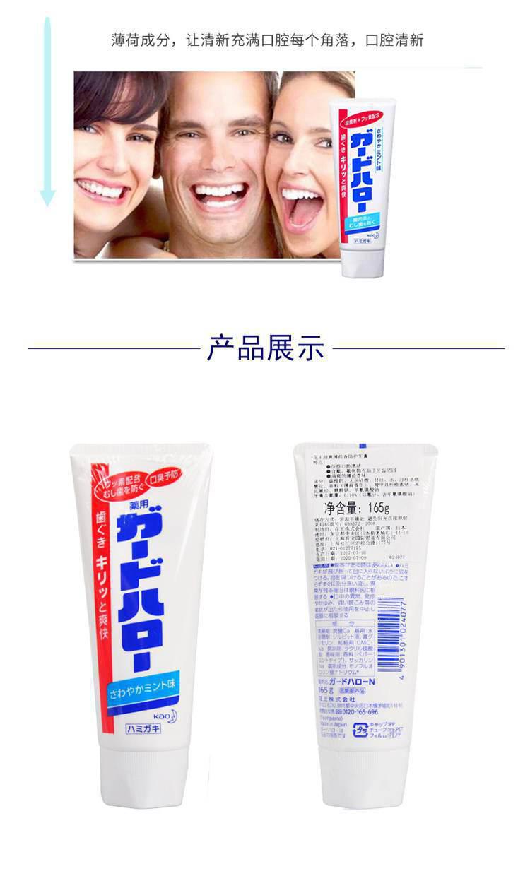 【3支装】花王日本进口大白成人牙膏清洁口腔清新口气 165g/支