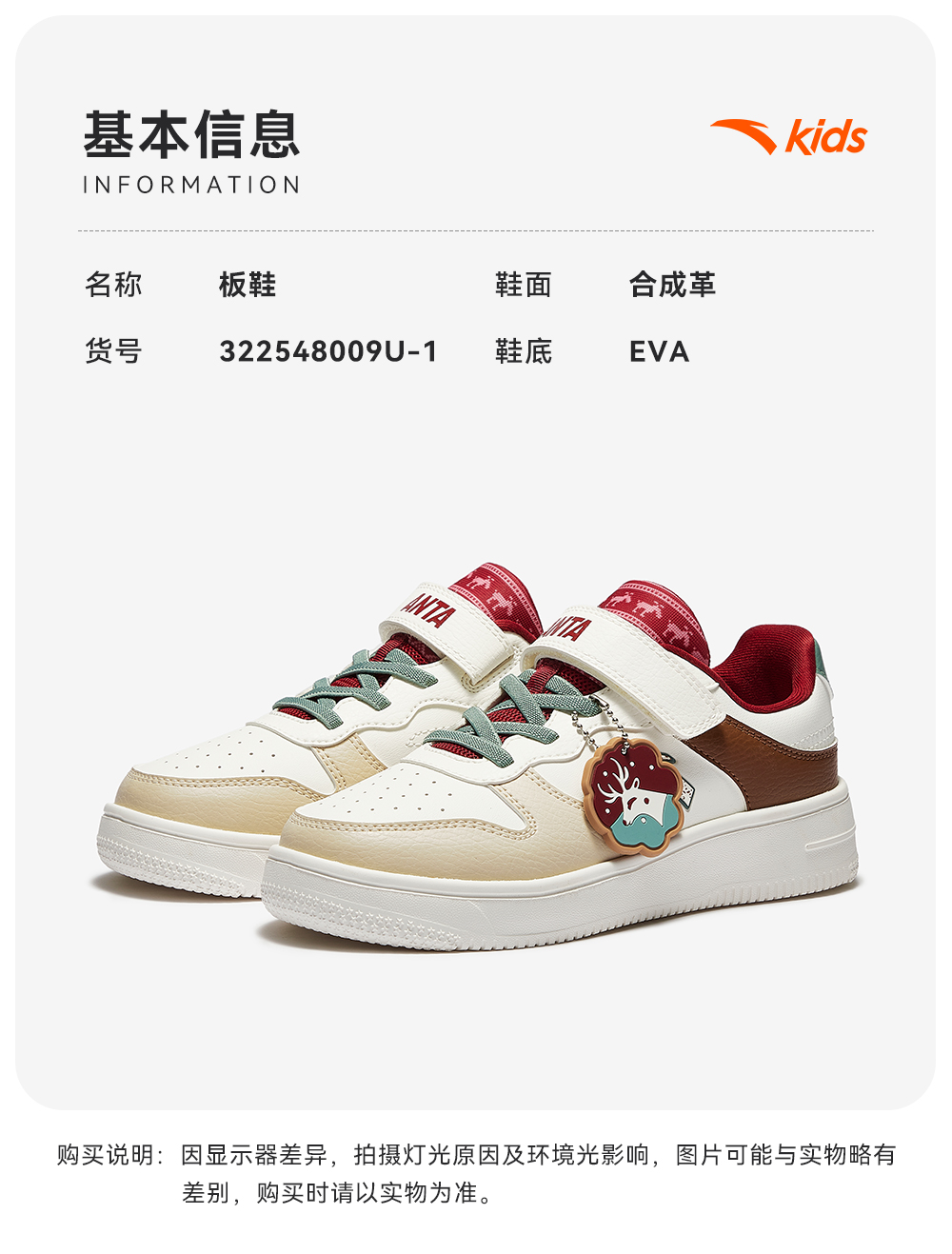 超级安踏女大童魔术贴板鞋秋冬耐磨运动鞋儿童休闲鞋322548009U