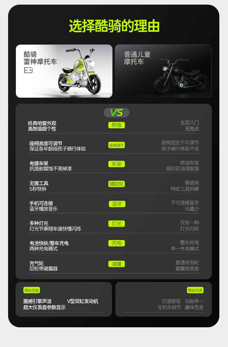 【新品上市】COOGHI酷骑E3雷神儿童电动摩托车