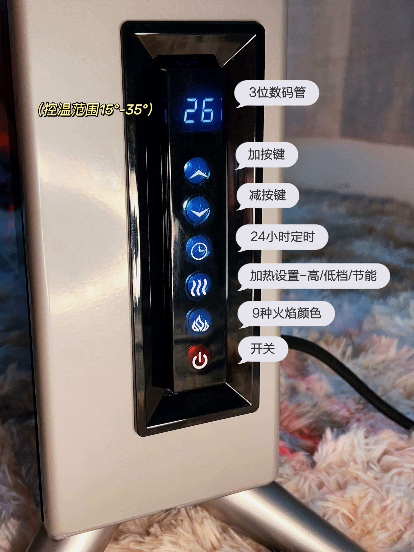 睡觉时关掉火焰保留暖风,没有灯光💡干扰更好眠