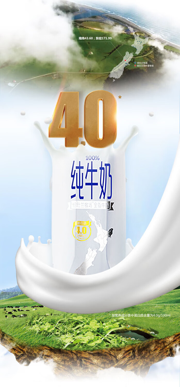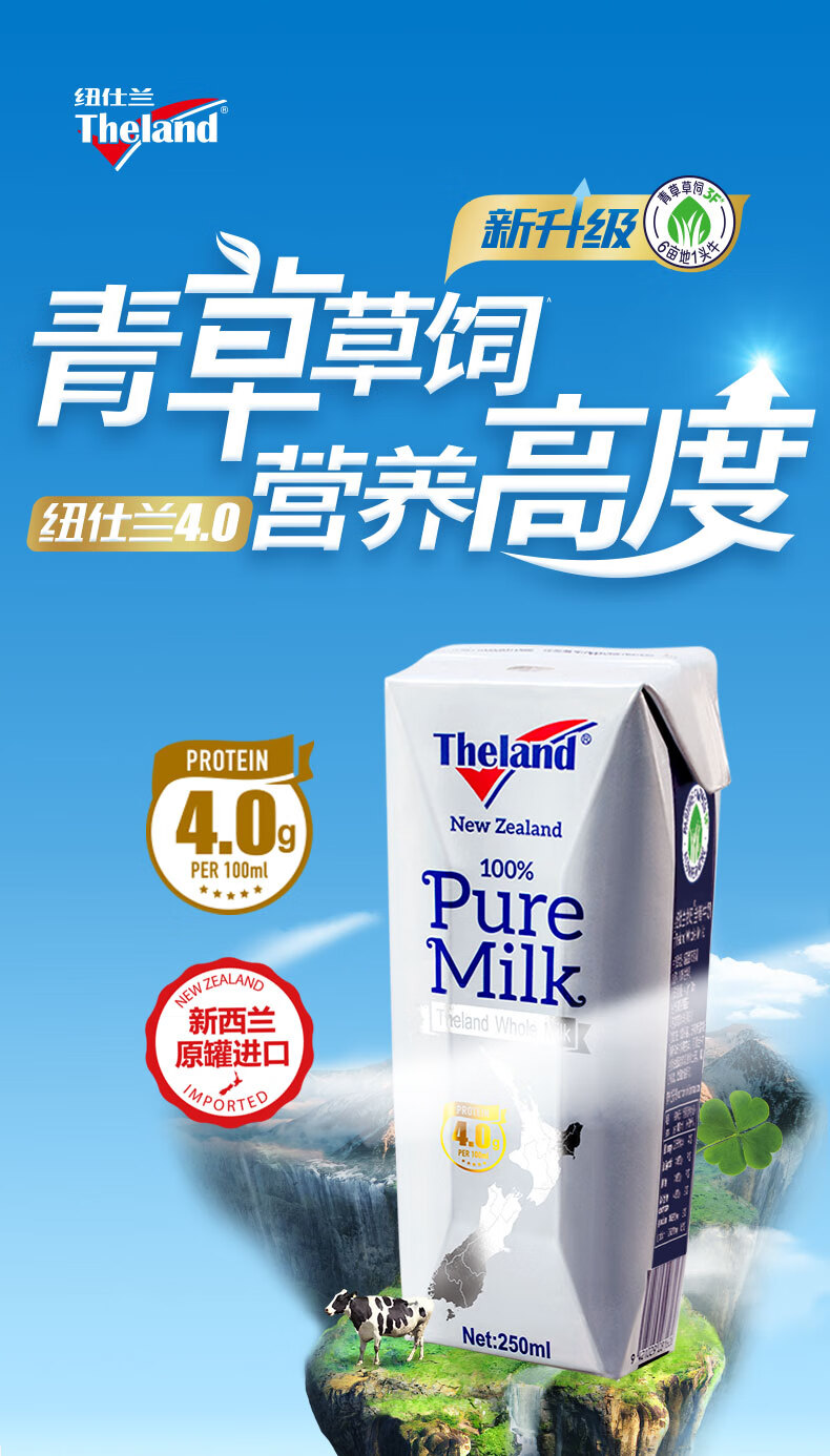 纽仕兰 牧场4.0g蛋白质/100ml高蛋白高钙全脂纯牛奶250ml*10礼盒