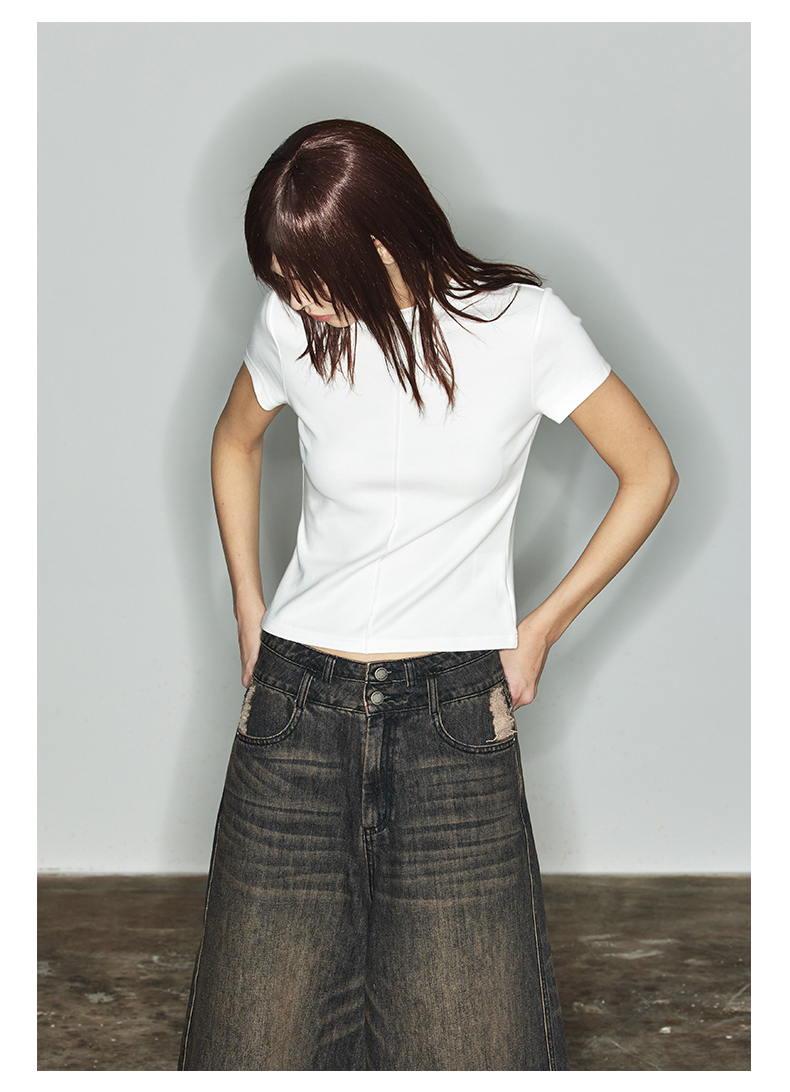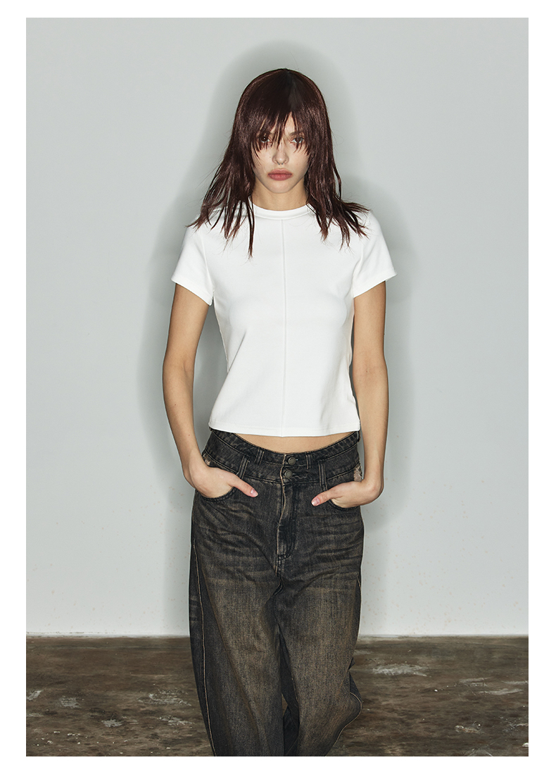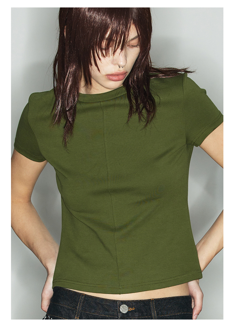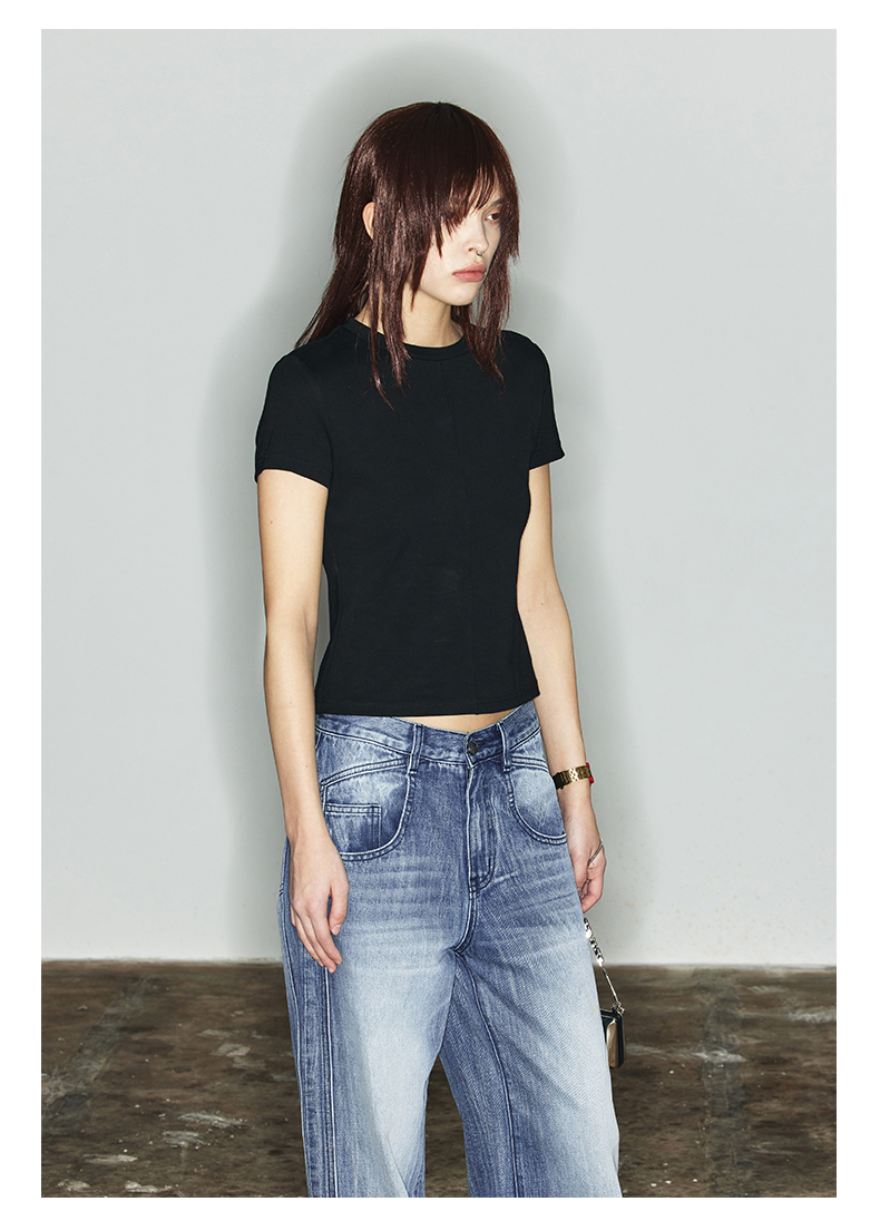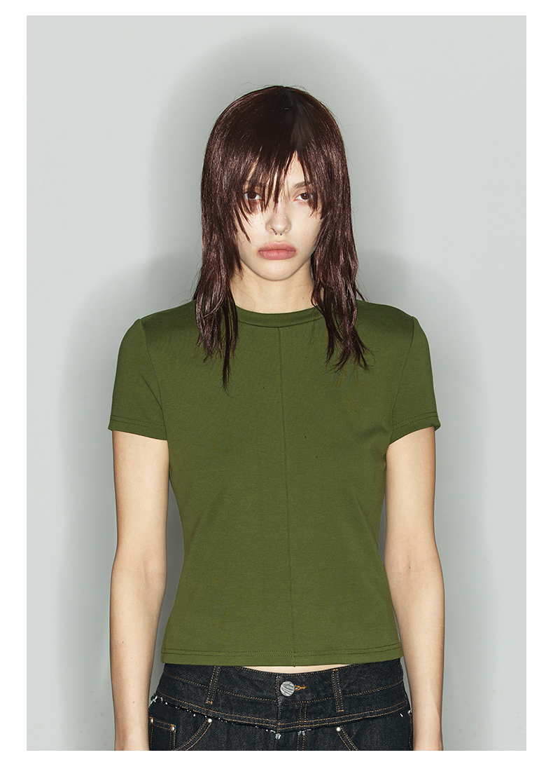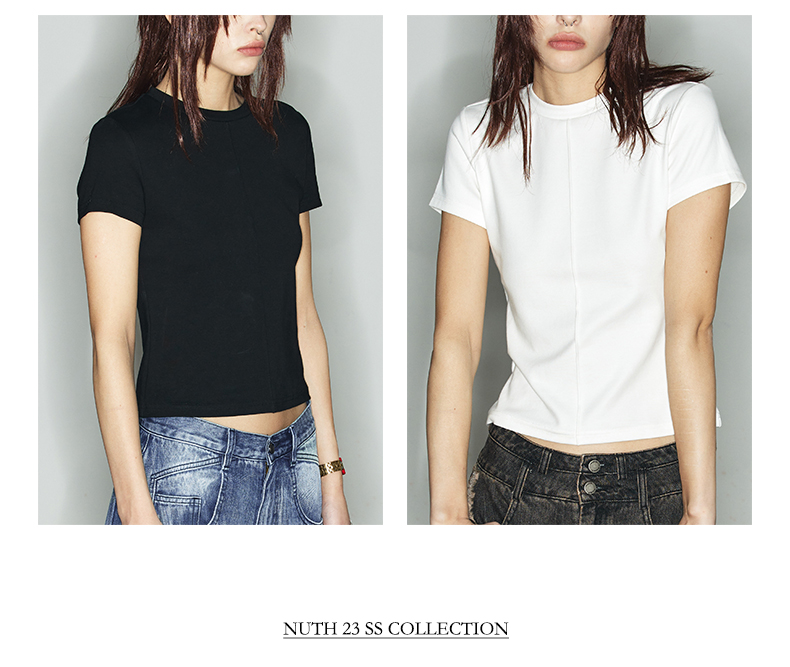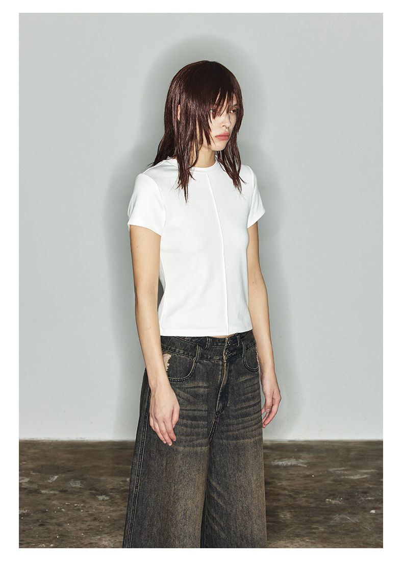 NUTH“轻装”|纯色圆领T恤分割线设计通勤百搭短袖上衣女