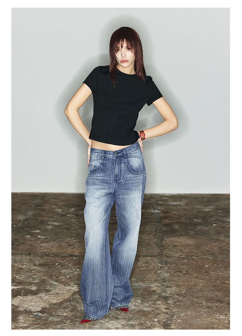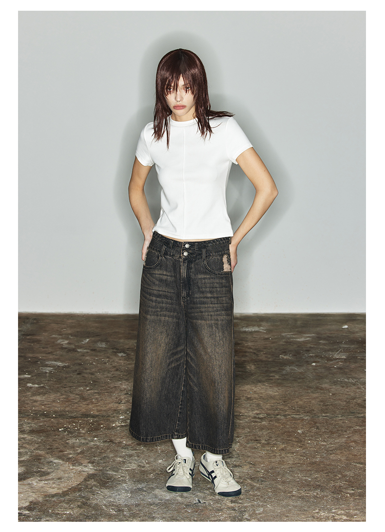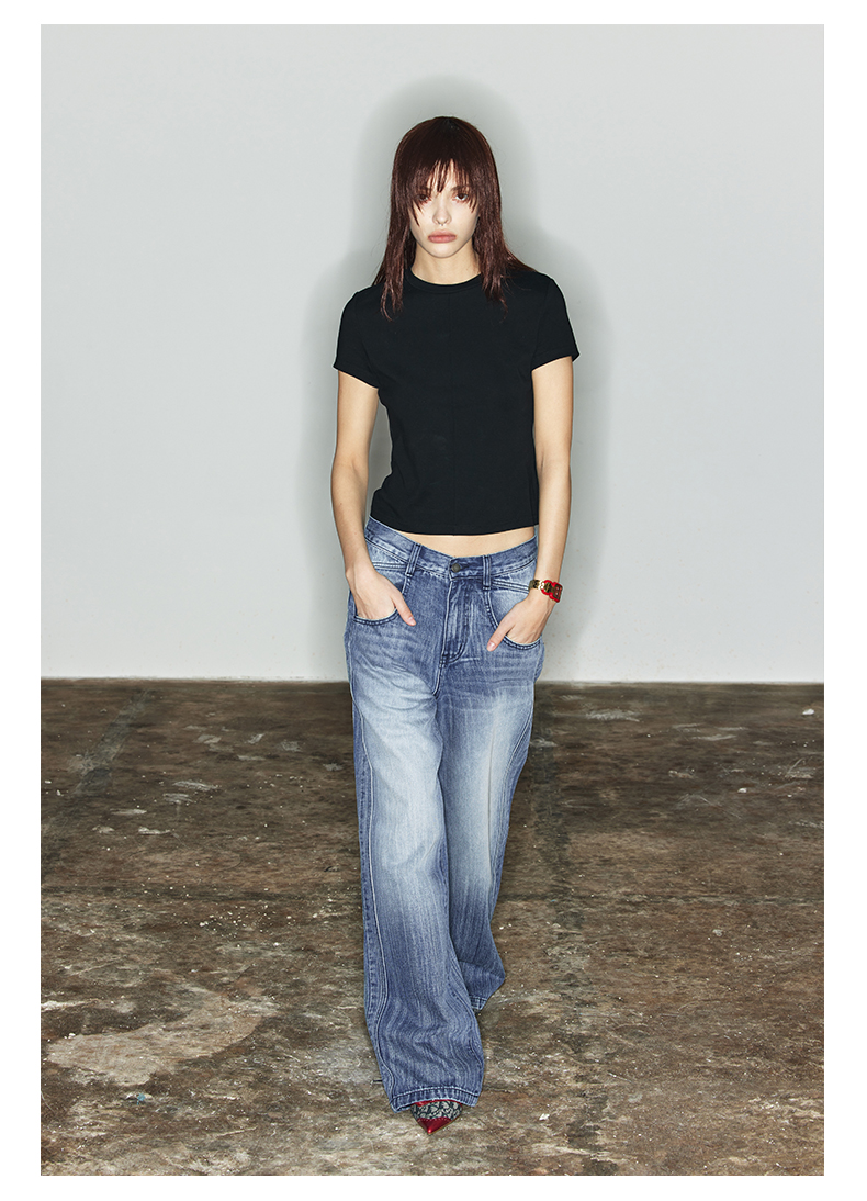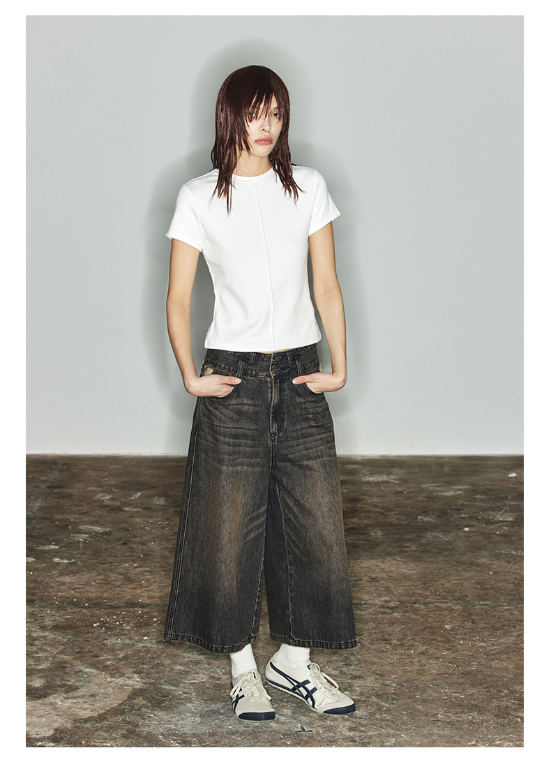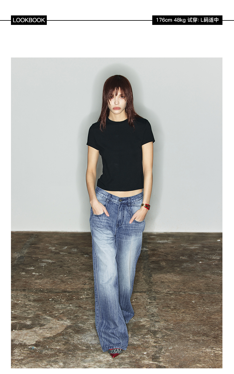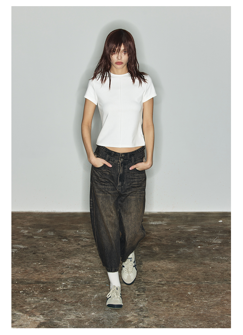 NUTH“轻装”|纯色圆领T恤分割线设计通勤百搭短袖上衣女
