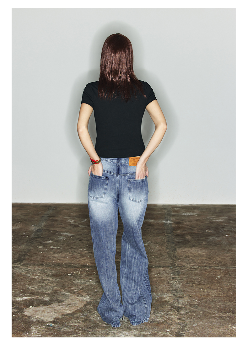 NUTH 水洗棕色复古做旧宽松直筒灯芯绒工装裤