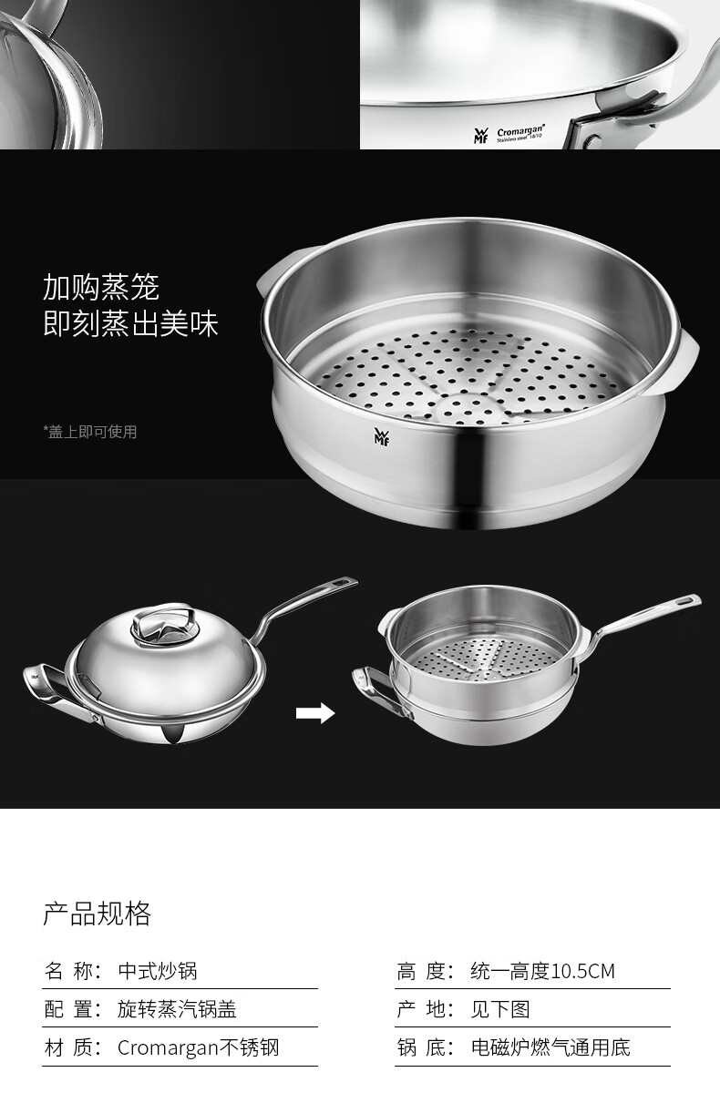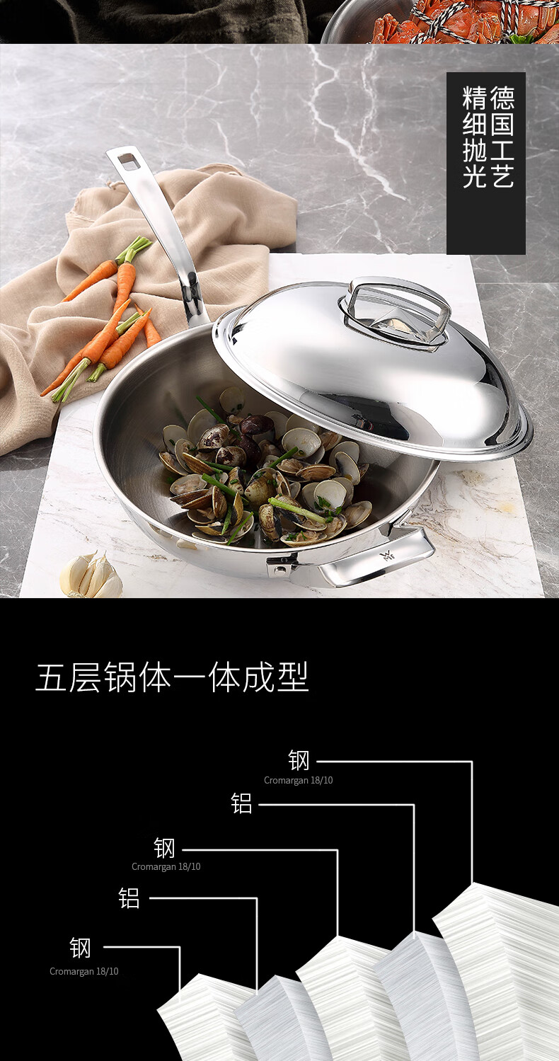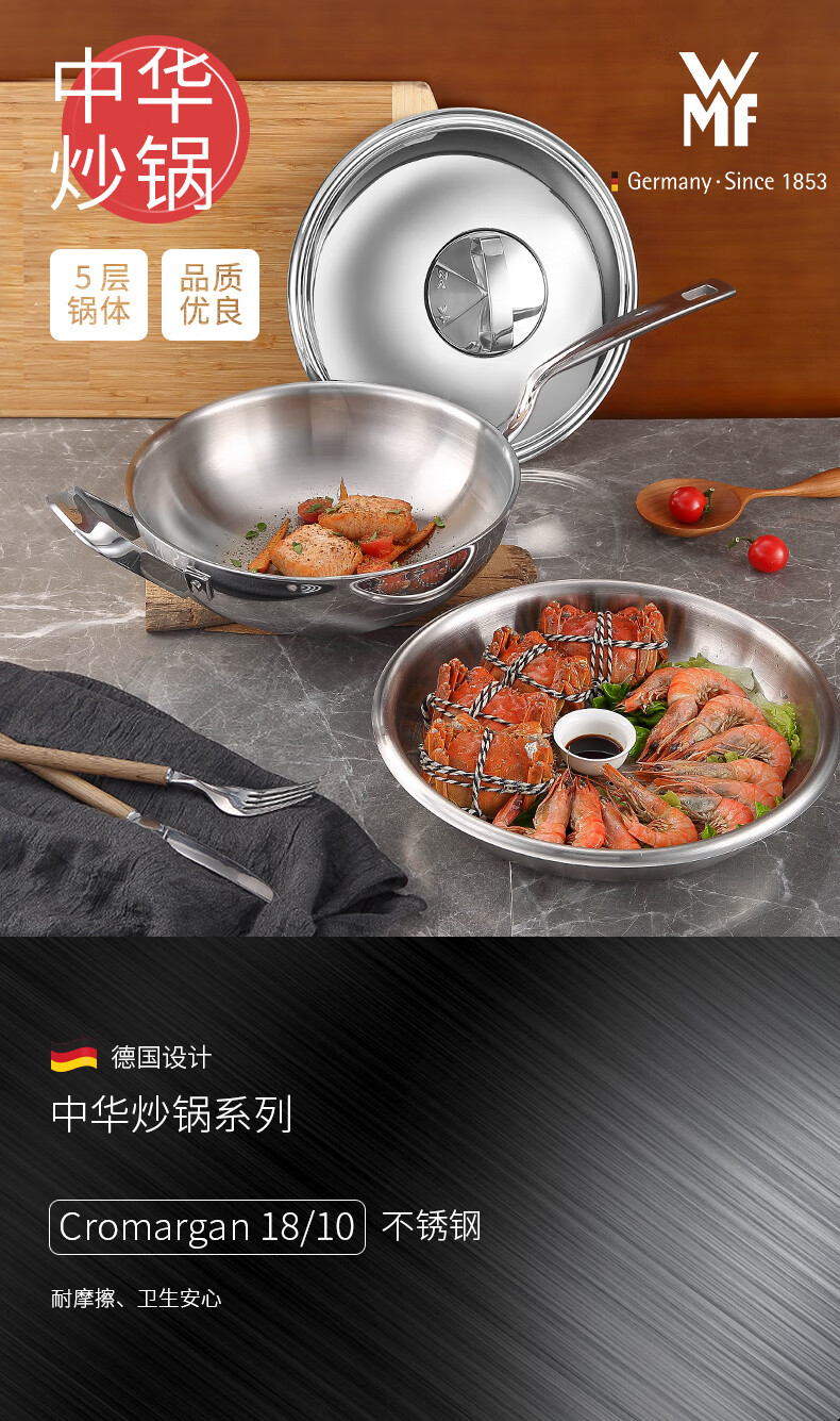 德国WMF福腾宝不锈钢中华炒锅30cm 0798549990
