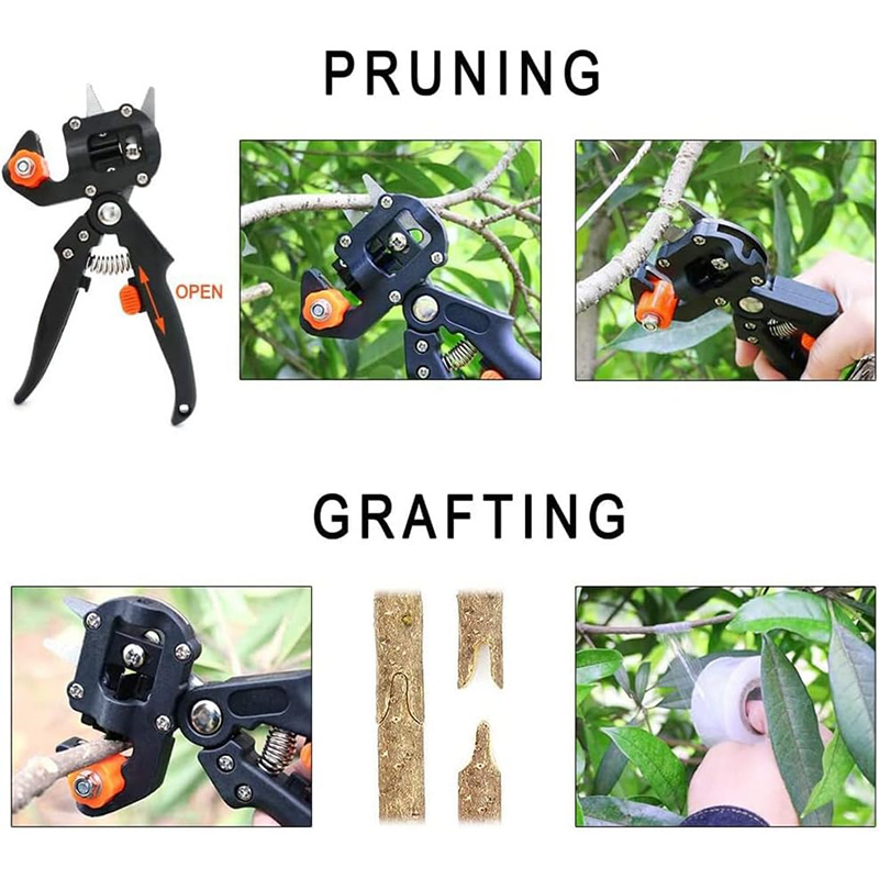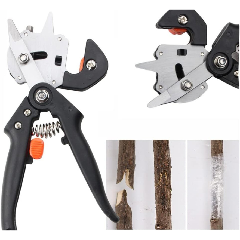 二合一嫁接修枝钳:锋利耐用的不锈钢刀刃,配有防滑手柄,方便切割刀柄并更方便地收纳。