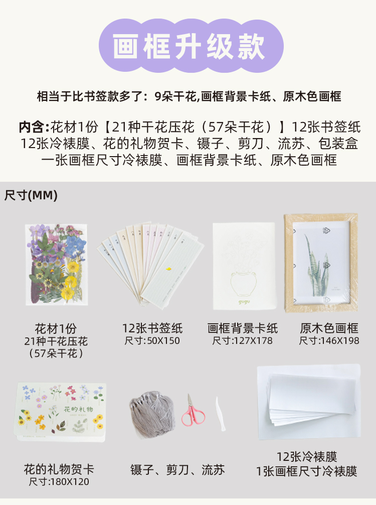 【团购】古古楽gugu 原创DIY花的礼物干花书签教师节礼物画框摆件手工制作