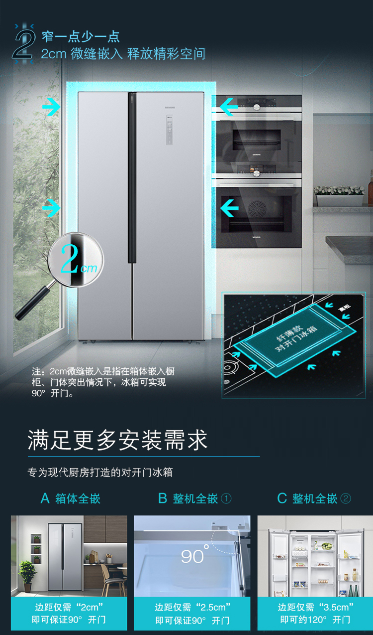 西门子(SIEMENS)530升对开门变频冰箱双开门大容量 超薄机身 风冷无霜 KX53NA41TI