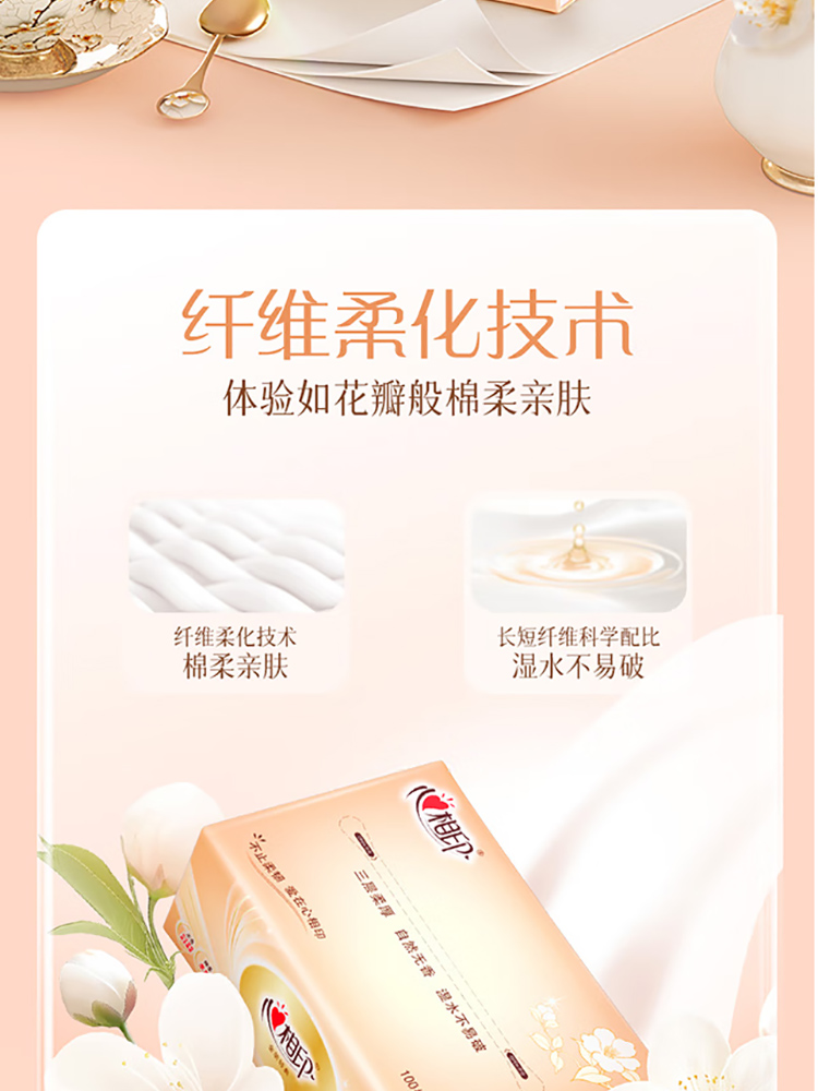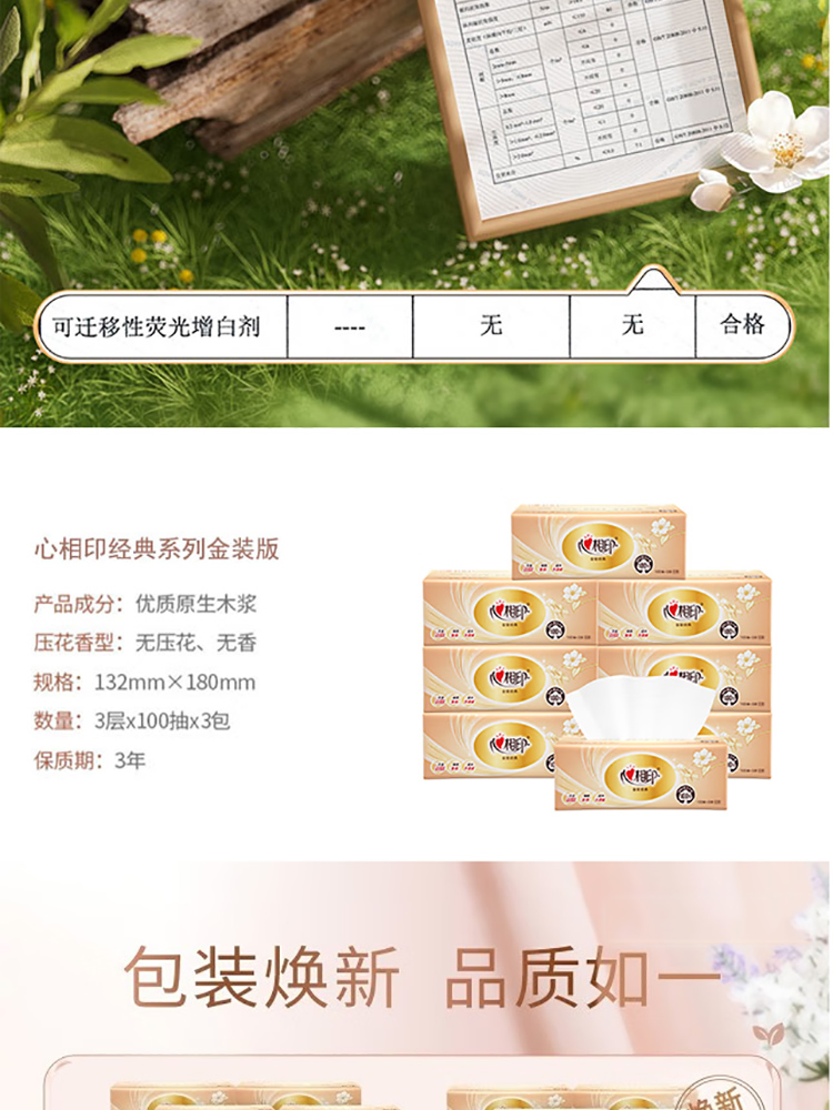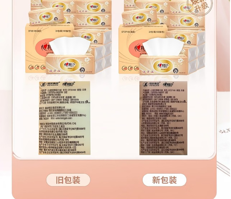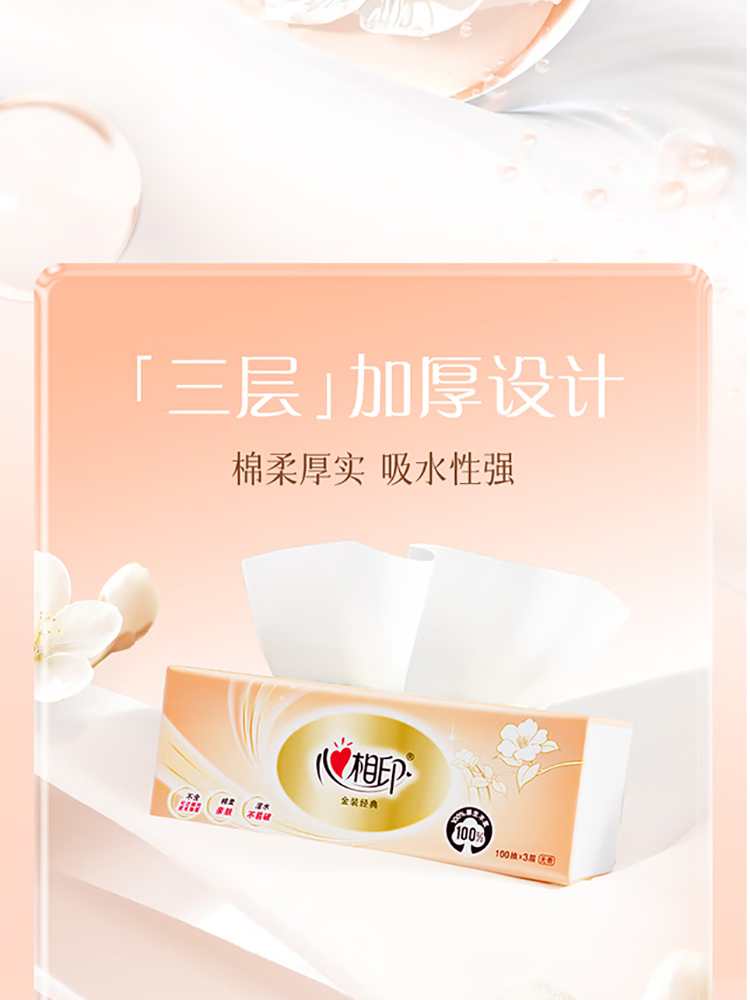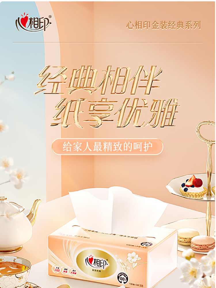 4DT55100(包装)心相印金装经典系列4包100抽3层塑装纸面巾