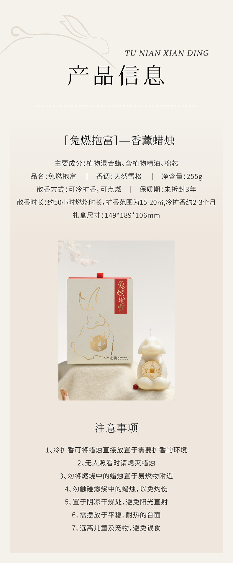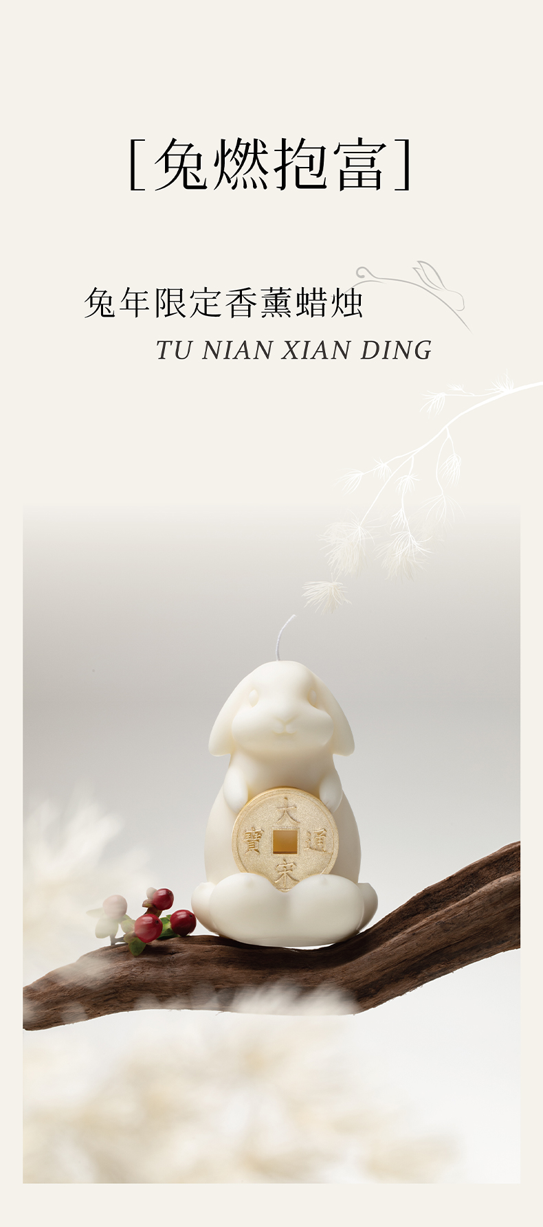 宋朝兔燃抱富香薰蜡烛礼盒 卯兔抱金 燃爆新年新运